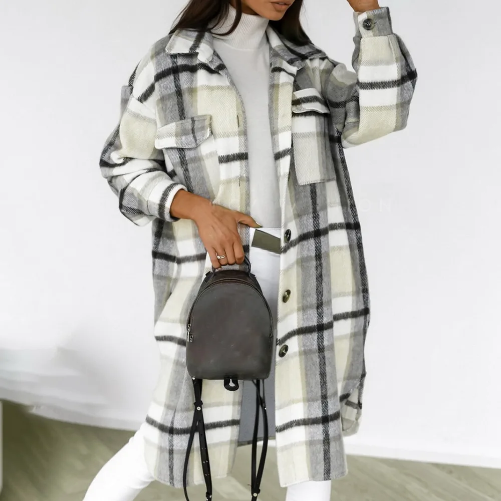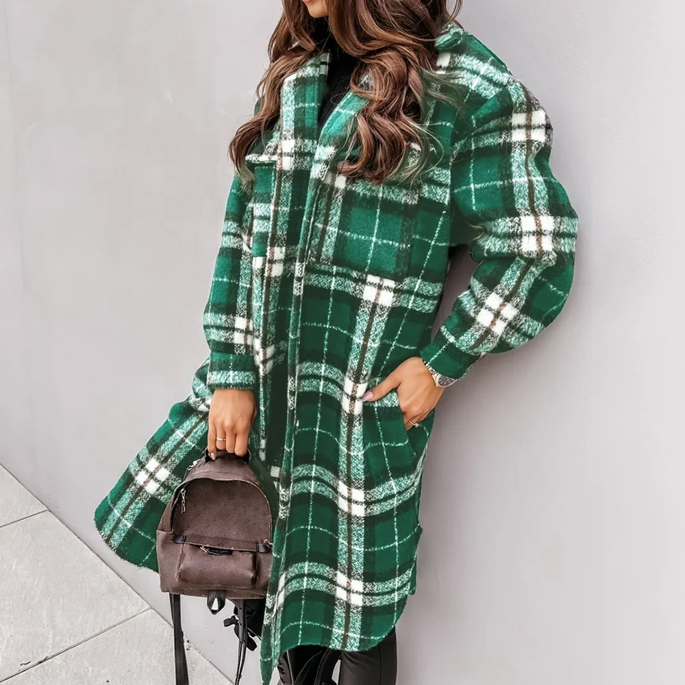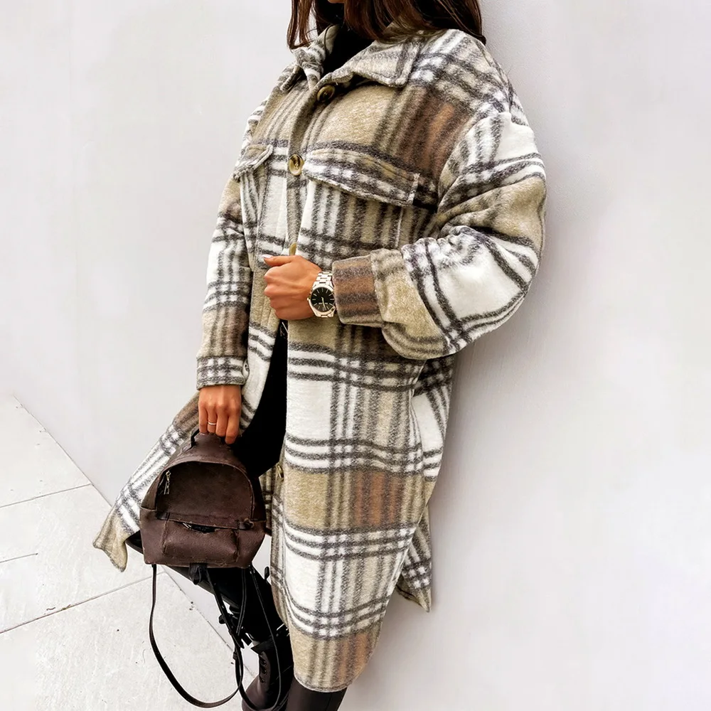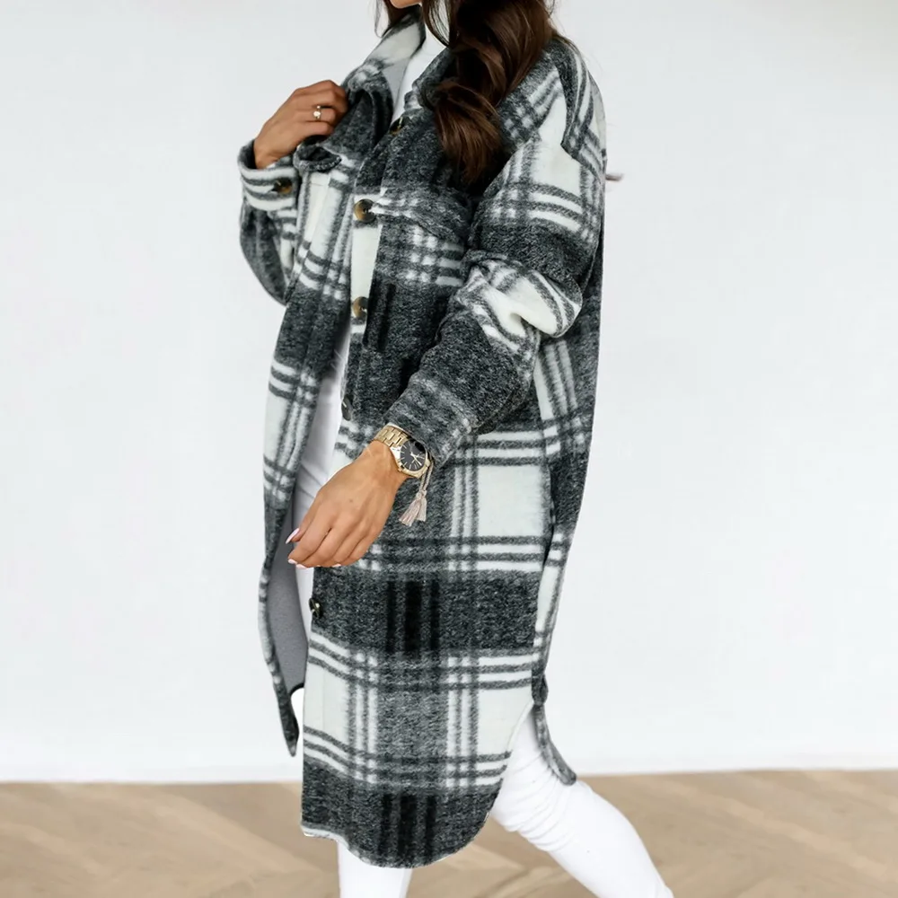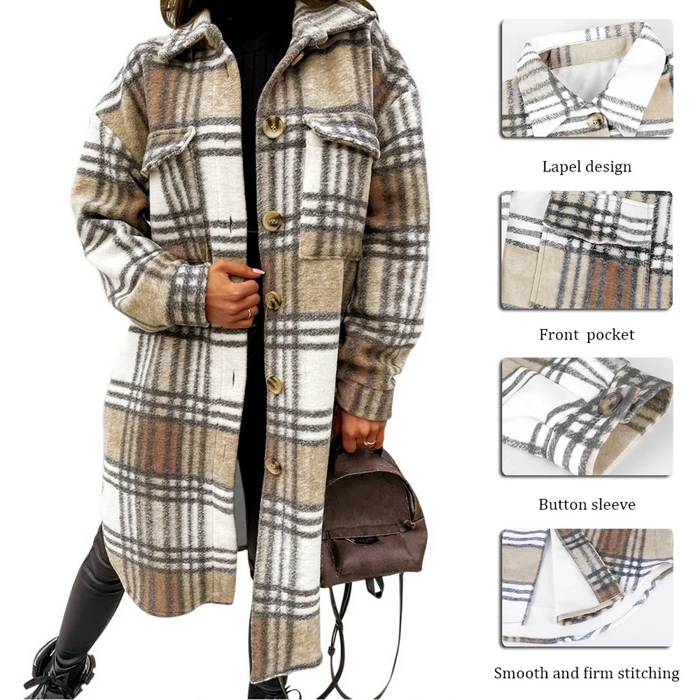 Осенняя клетчатая рубашка, женская верхняя рубашка, длинная клетчатая куртка, Свободное пальто большого размера, повседневное зимнее пальто с длинным рукавом, уличная одежда