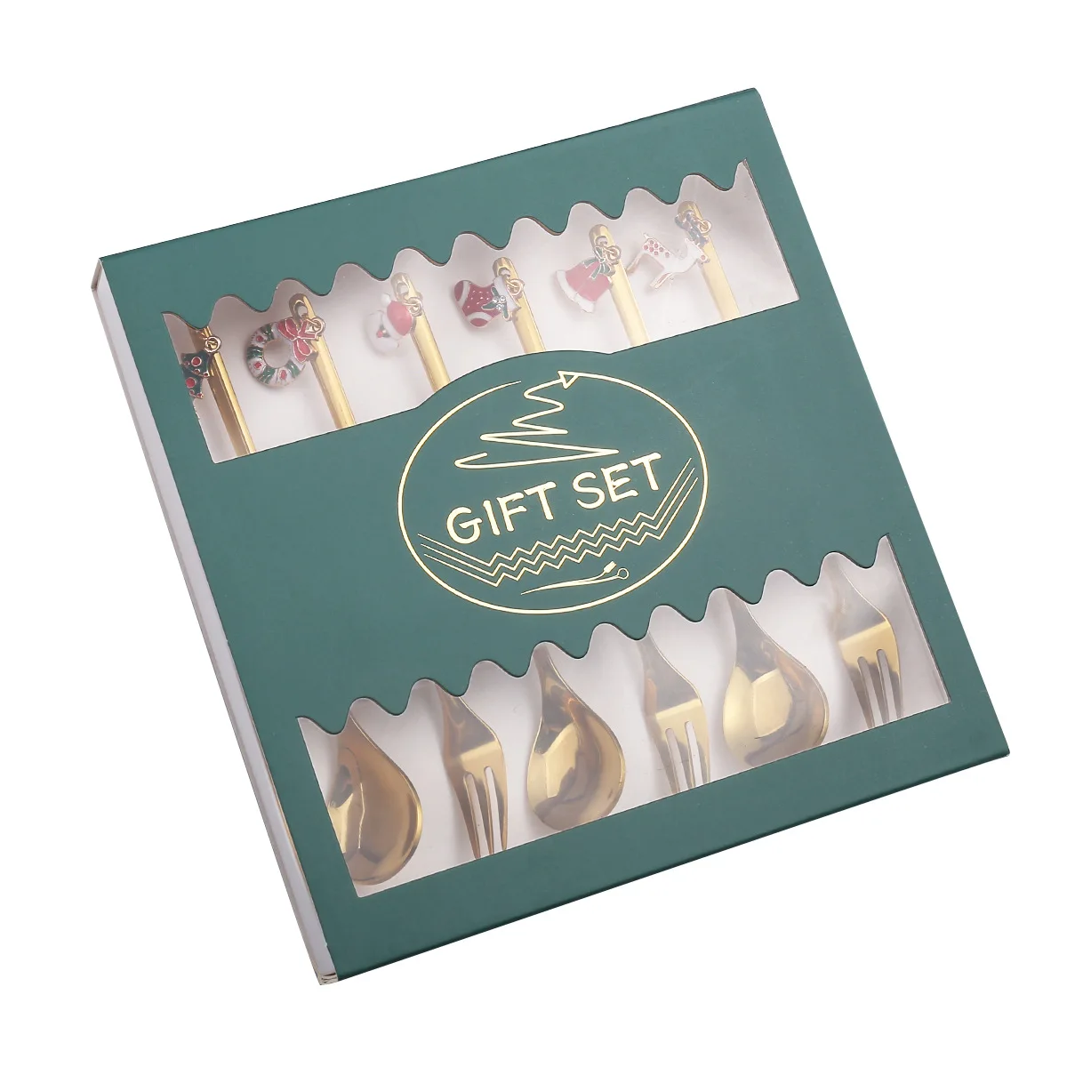 6 шт., новогодние чайные ложки из нержавеющей стали
