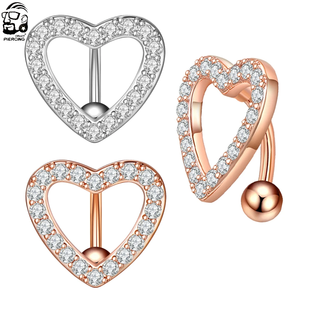 Кольцо для пупка с большим сердцем, штанга с обратной стороны, стальной пирсинг для пупка, новый стиль, пикантный пирсинг для живота, Ombligo Umbigo Oreja