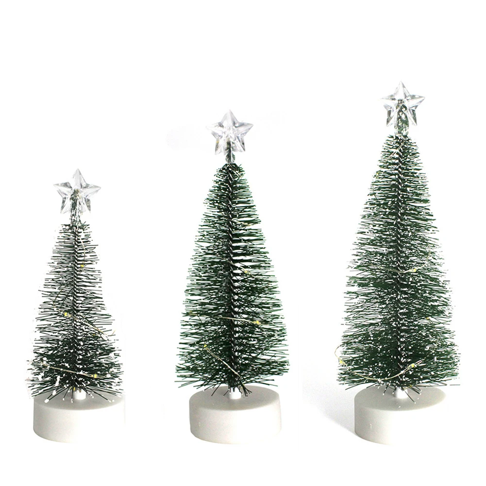 3 шт. светодиодный светильник, Мини Искусственные елки, светящиеся снежные морозы, сосны, украшения для фестиваля, настольная Рождественская елка, украшения для домашней вечеринки, Новогодний подарок
