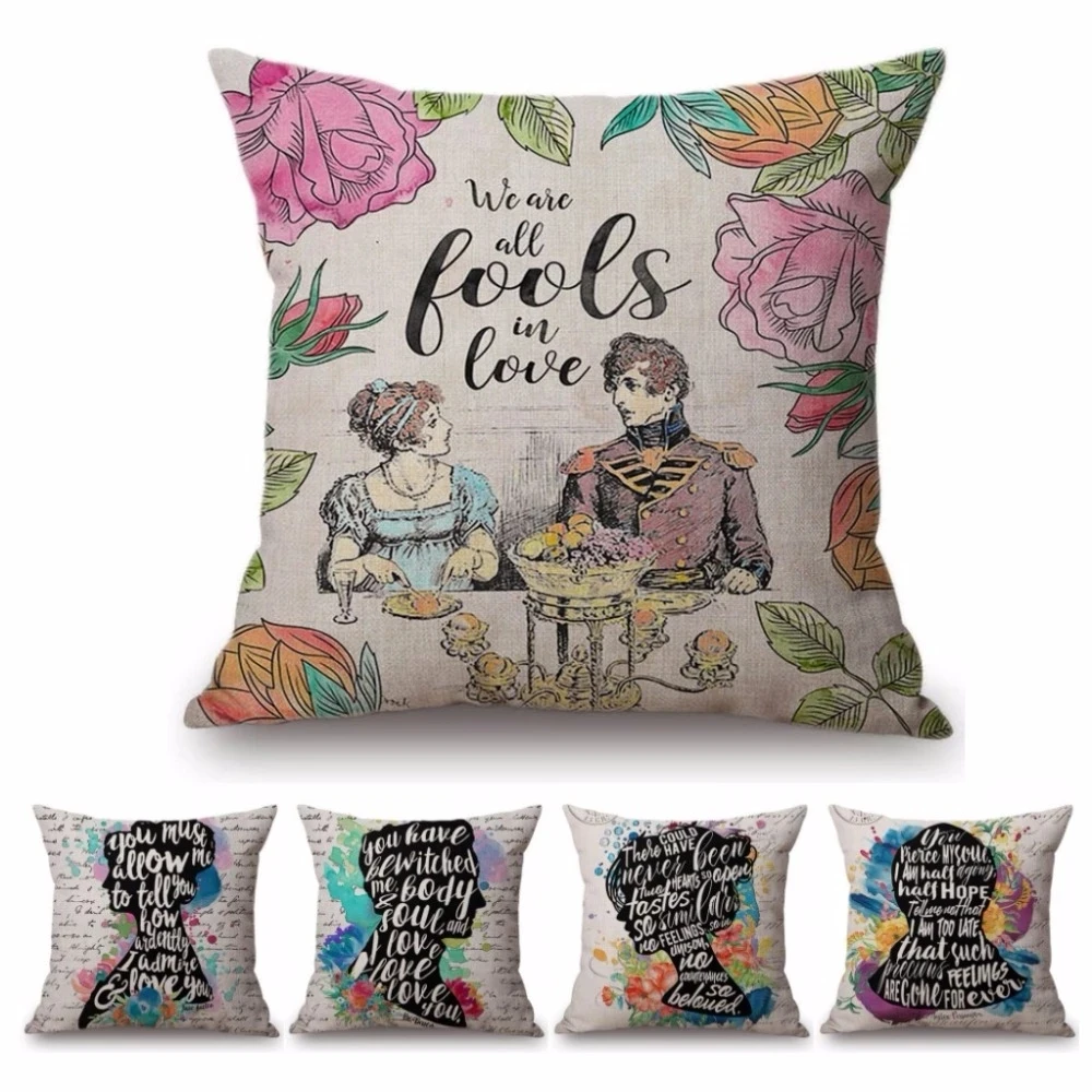 Наволочка для дивана с квадратным цветочным принтом Джейн из астина, льняной декоративный чехол с надписью, 18 дюймов, в скандинавском стиле, шедевр