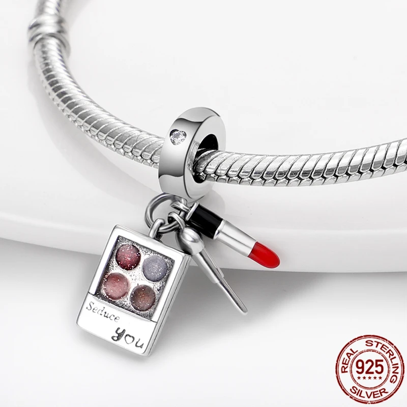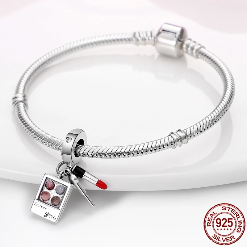 Новинка 2021, подвески из стерлингового серебра 925 пробы с искусственными элементами и бусинами для макияжа, подходят для оригинальных браслетов и браслетов Pandora, модные украшения для рукоделия