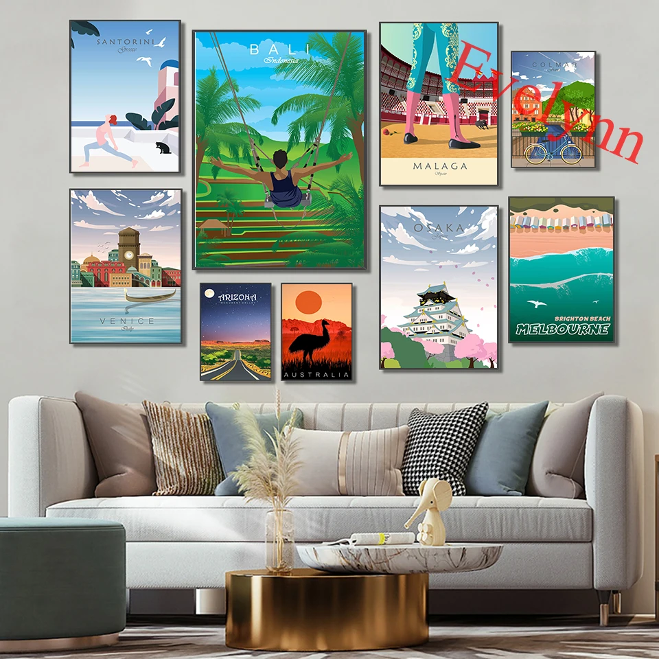 Постер для путешествий, Бали, Индонезия, Каппадокия, Турция, Марокко, Капри, Австралия, Ассам, Япония, Греция, декор для гостиной, Настенная картина Canva