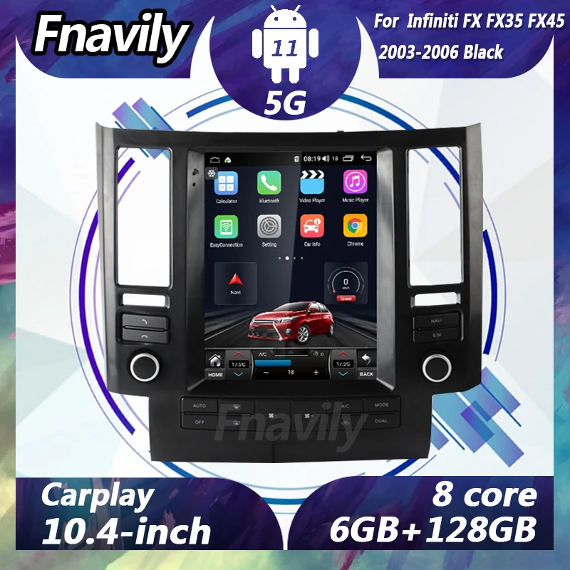 Fnavily 10,4 "Android 11 автомобильный dvd-плеер для Infiniti FX FX35 FX45 видео Tesla стиль автомобиля Радио Стерео навигация GPS 2003-2006Автомобильный dvd-плеер для Infiniti FX FX35 FX45 видеоAndroid 11 8core 4 + 64G 6 + 128G
