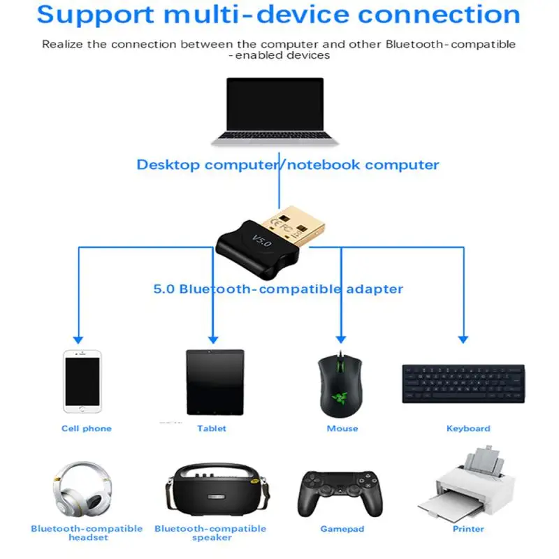5,0 Bluetooth-совместимый адаптер USB-передатчик для ПК, компьютера, приемника, ноутбука, наушников, аудиопринтера, приемника передачи данных