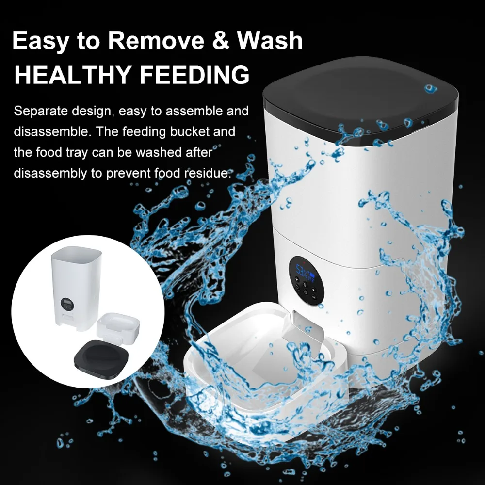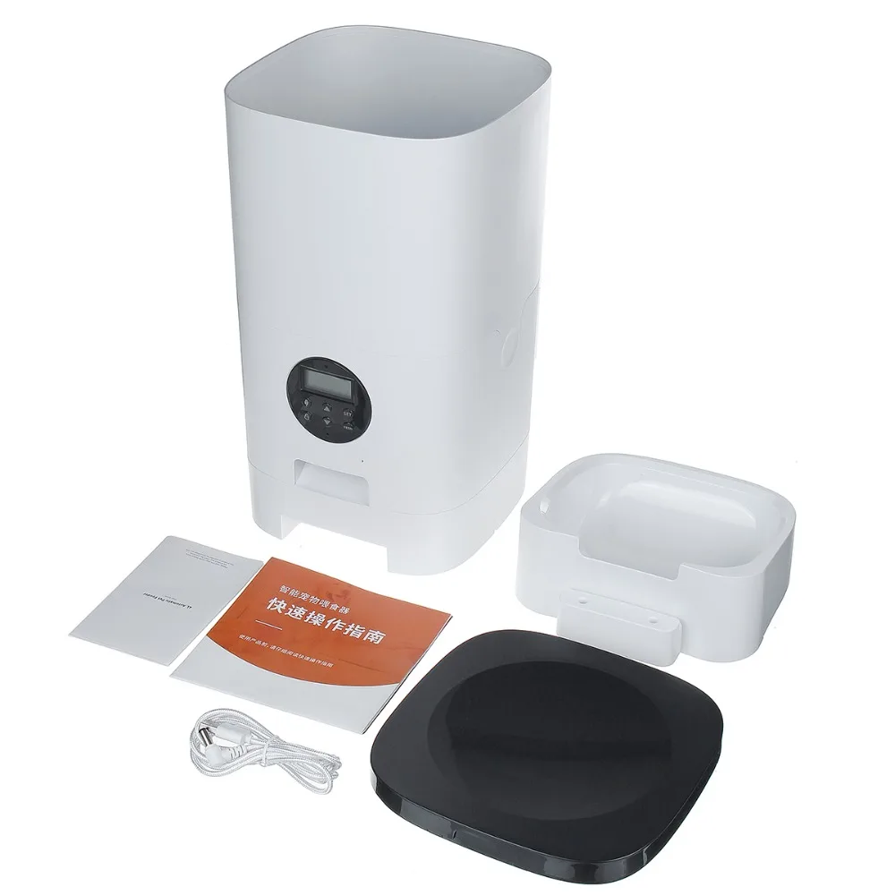 Особенности:1. Бочки для зерна большой емкости объемом 6 л могут хранить больше продуктов, поэтому вы можете сэкономить от беспокойства о Ежедневном добавлении пищи.2. Легко установить время еды и количество пищи, которые будут доставлены через мобильный телефон, и регулярно кормить домашних животных более безопасно, чтобы предотвратить полный или голод домашних животных.3. Владельцы домашних животных играют голоса, чтобы позвонить питомцу в обеденное время.4. Автоматическая кормушка для кошки питается от адаптера питания и 3 батареек размера D. Когда отключение питания, питатель будет продолжать работать на 3 батареях размера D, чтобы гарантировать, что ваш питомец никогда не пропустит кормления. (Батарейки в комплект не входят)5. Для предотвращения загрязнения бактериальных примесей волос удобно наблюдать оставшуюся в бочке корм для домашних животных.6. Обрабатывает любой диапазон Сухих Пищевых размеров до 12 мм диаметра.7. Лоток для еды легко разбирается, легко моется после использования.
