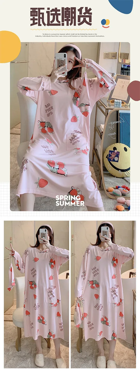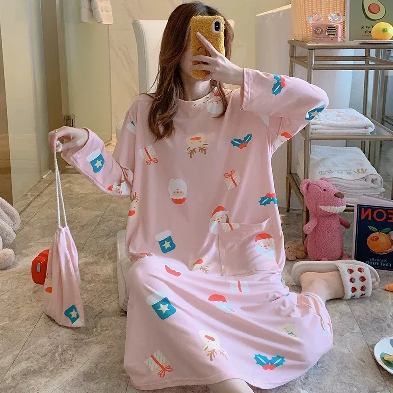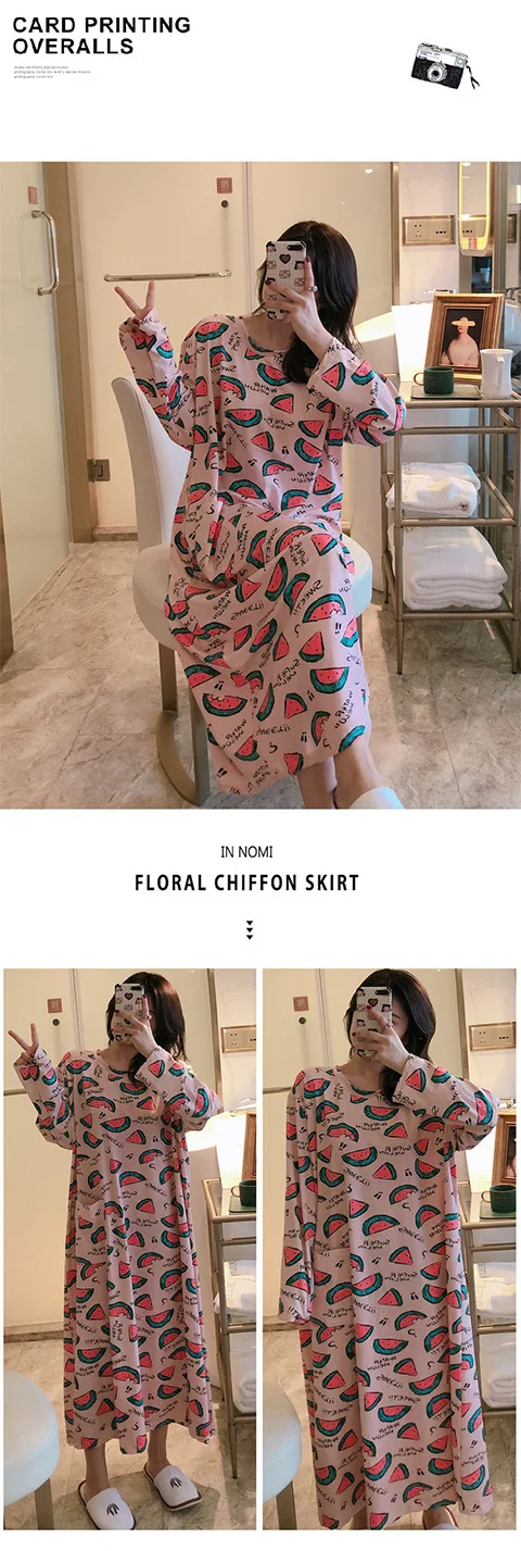 Женские осенне-зимние ночные рубашки с длинным рукавом в Корейском стиле, Женская милая модель, домашнее обслуживание, средней длины