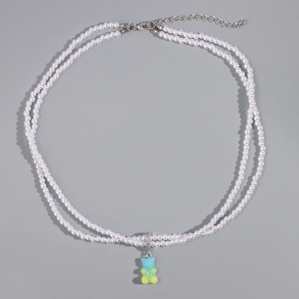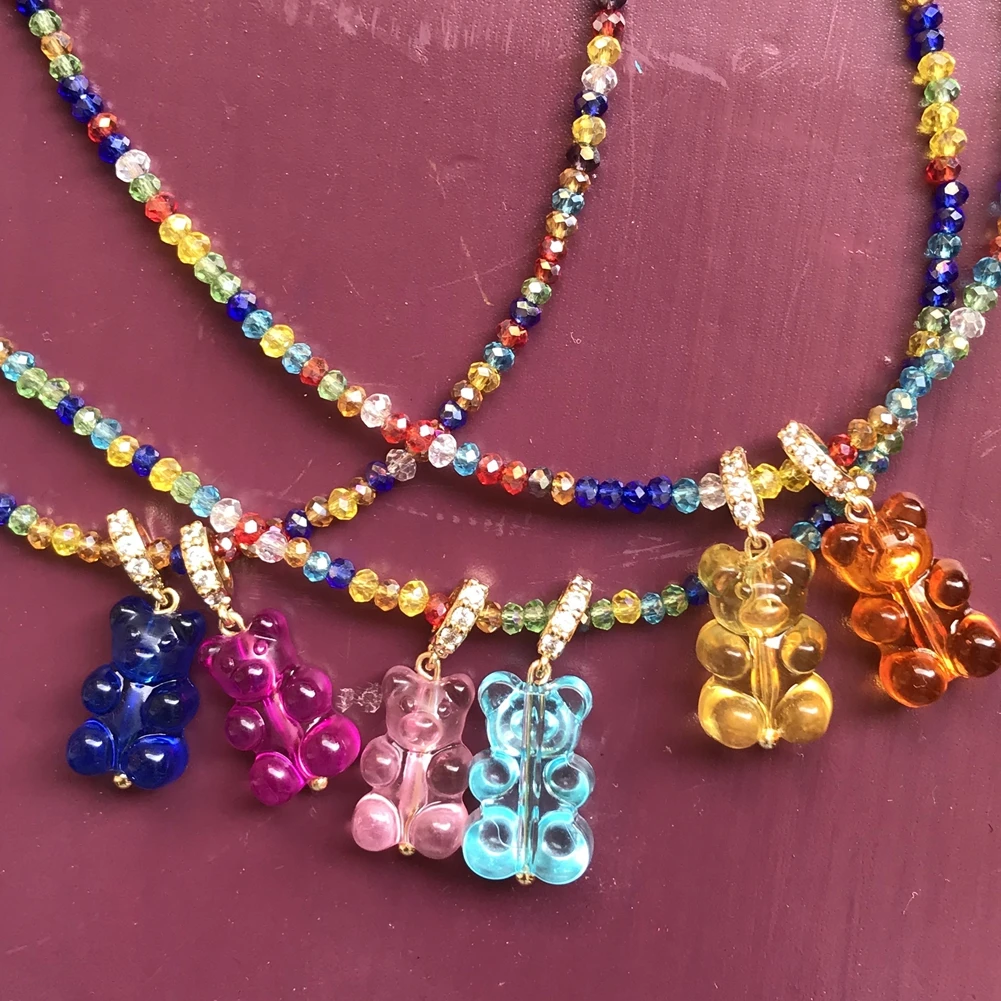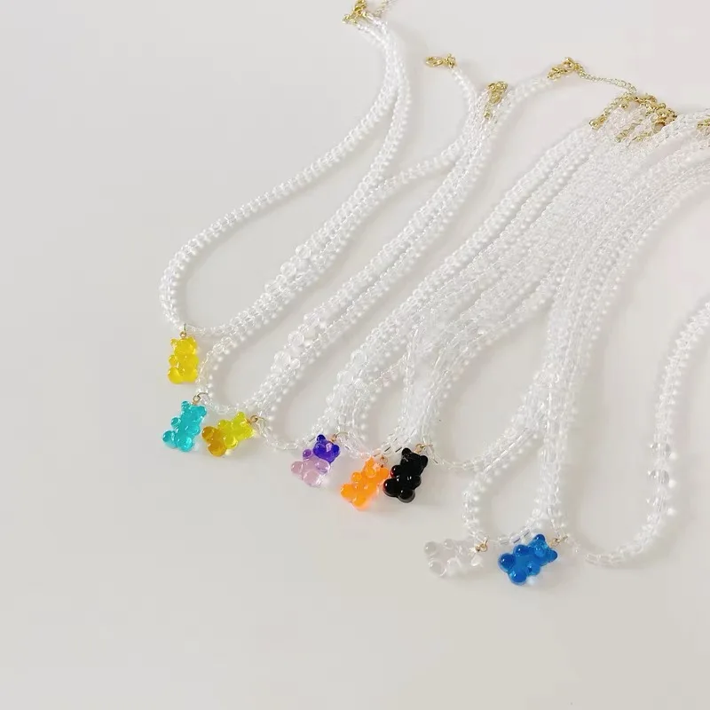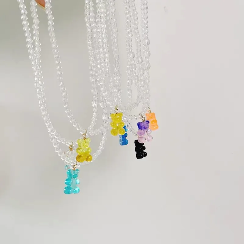 Корейский стеклянный бисерный воротник, блестящее желейное искусственное украшение, бриллианты с мини-медведем, женские ожерелья