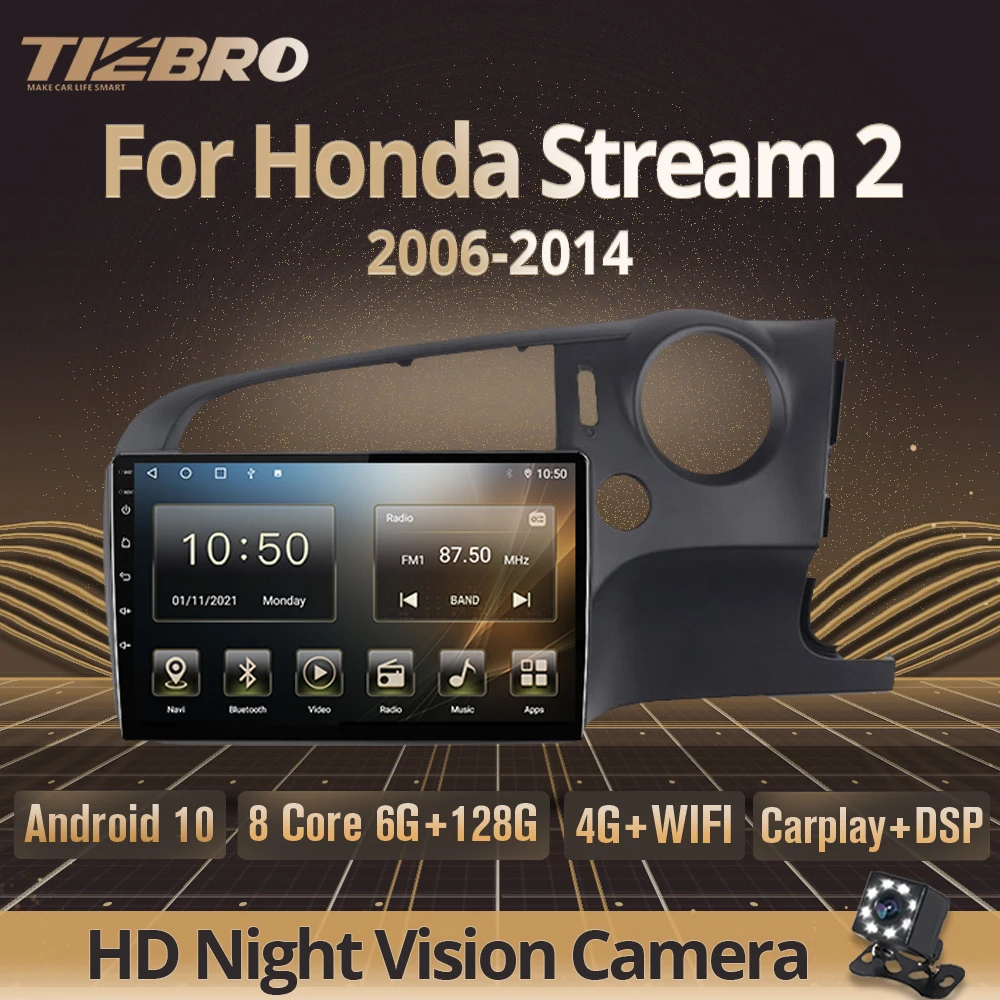 Автомагнитола Tiebro 2DIN Android 10 для Honda Stream 2 RHD 2006-2014 IPS экран Авторадио GPS навигация Автомобильное видео Bluetooth плеер