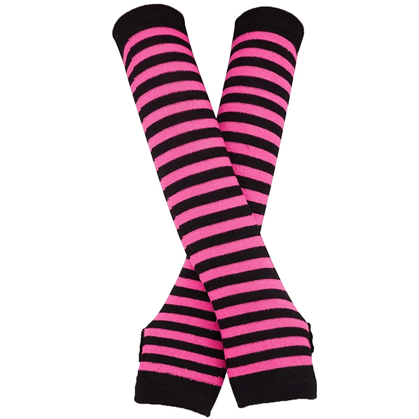 Черные полосатые Перчатки Без Пальцев, женские панковские готические Длинные Теплые Зимние Модные женские Перчатки, теплые Перчатки