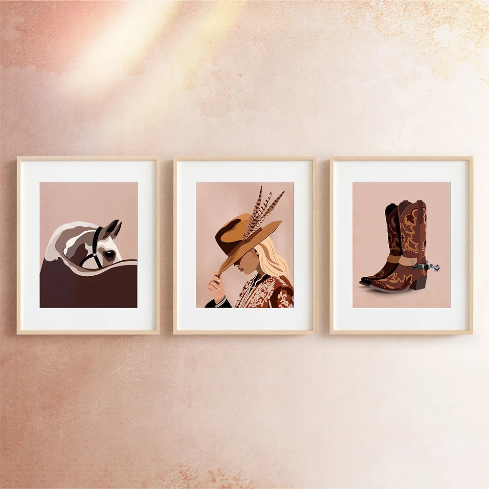 Постер и ковбойские сапоги в западном стиле Бохо с принтом лошадей и ковбойских сапог Картина на холсте ковбойский стиль настенные картины для гостиной домашний декор