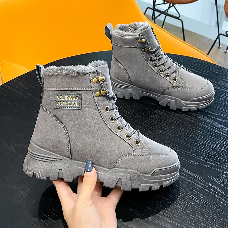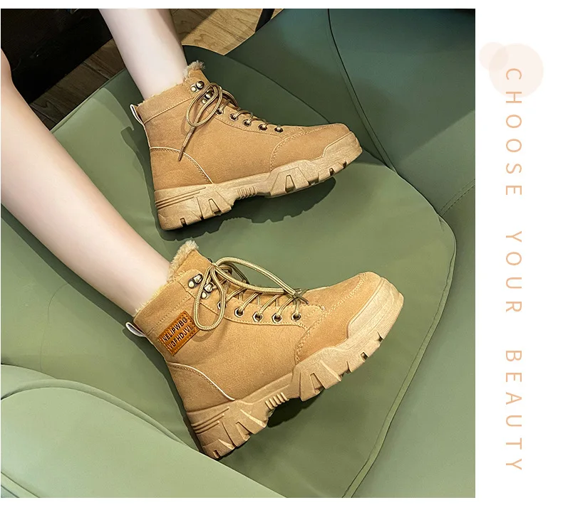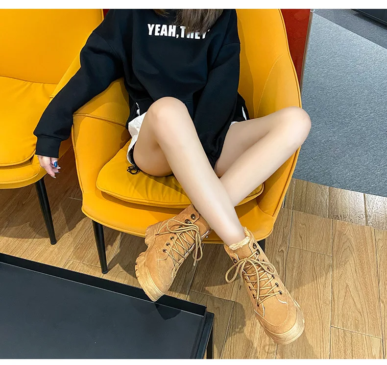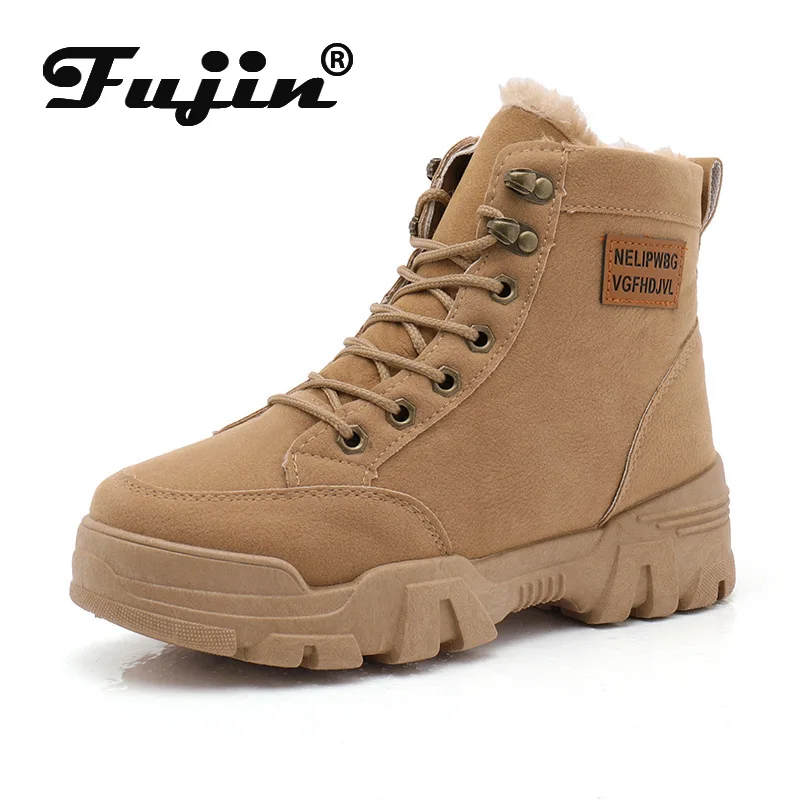 Fujin2021 г.; Женские зимние ботинки на платформе и танкетке 3 см; Женские ботильоны с плюшем на меху; Теплая зимняя обувь; Женская обувь на массивном каблуке