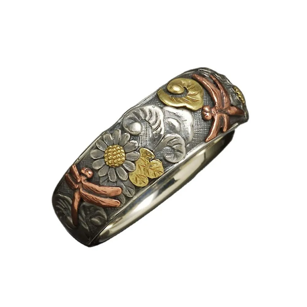Цвет: античное сереброПол: мужчин и женщинУзор: цветы, стрекозыРазмер кольца: 5, 6, 7, 8, 9, 10, 11Стиль: простой, креативный, индивидуальный, хип-хоп100% новый и высокое качествоРеальный снимок: