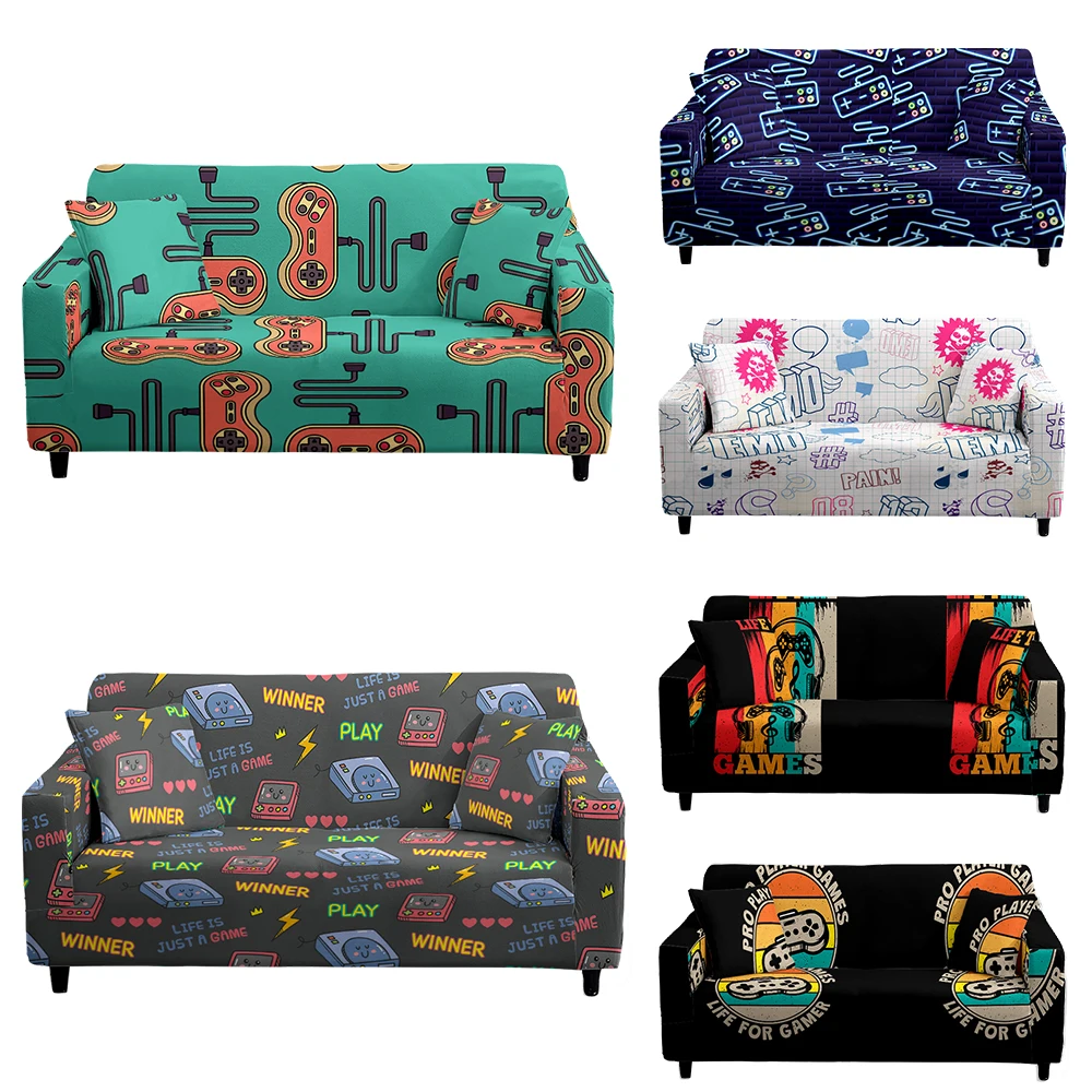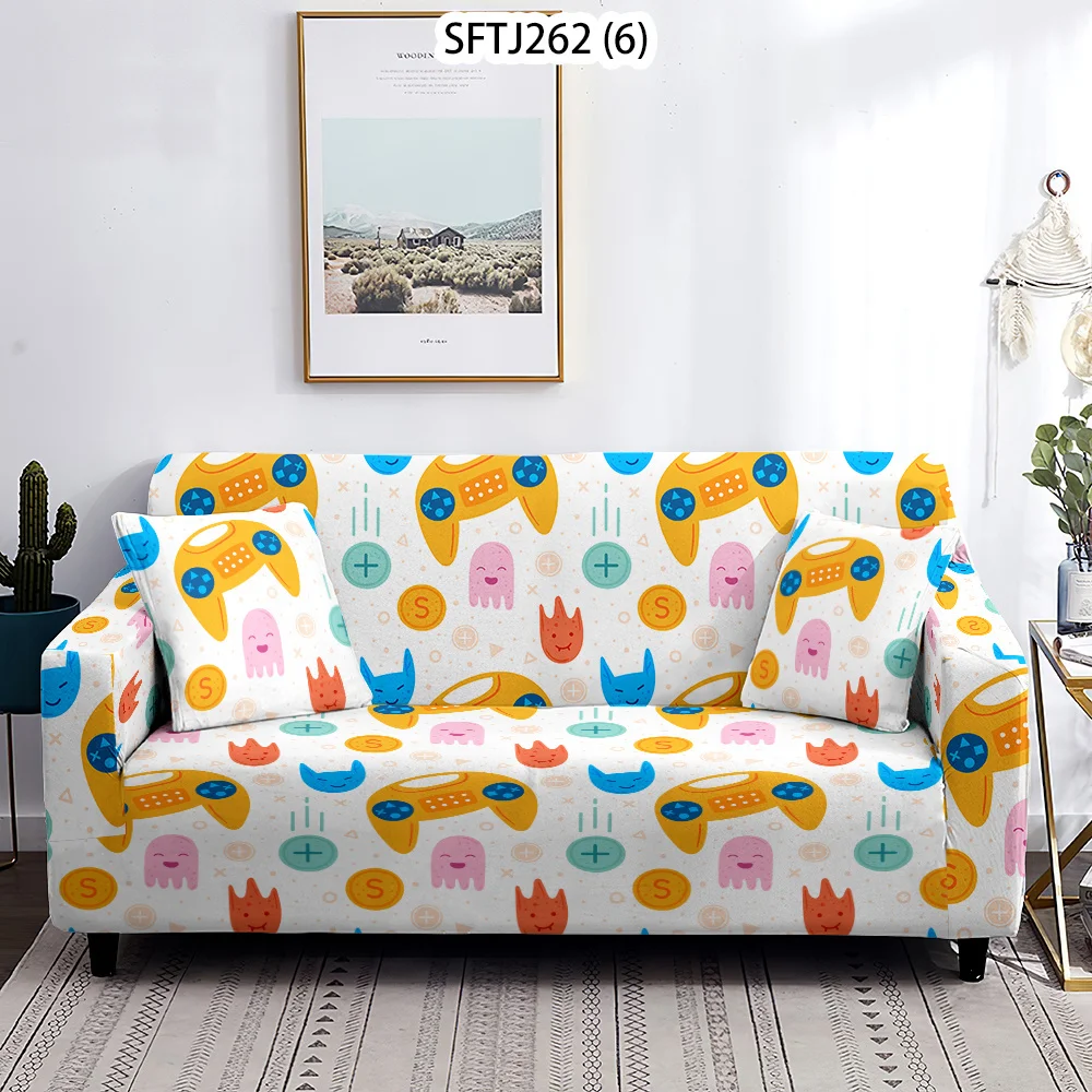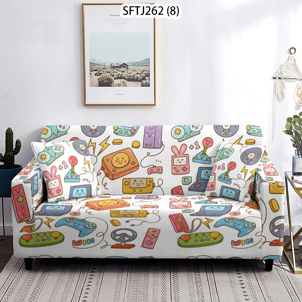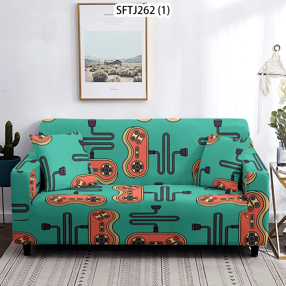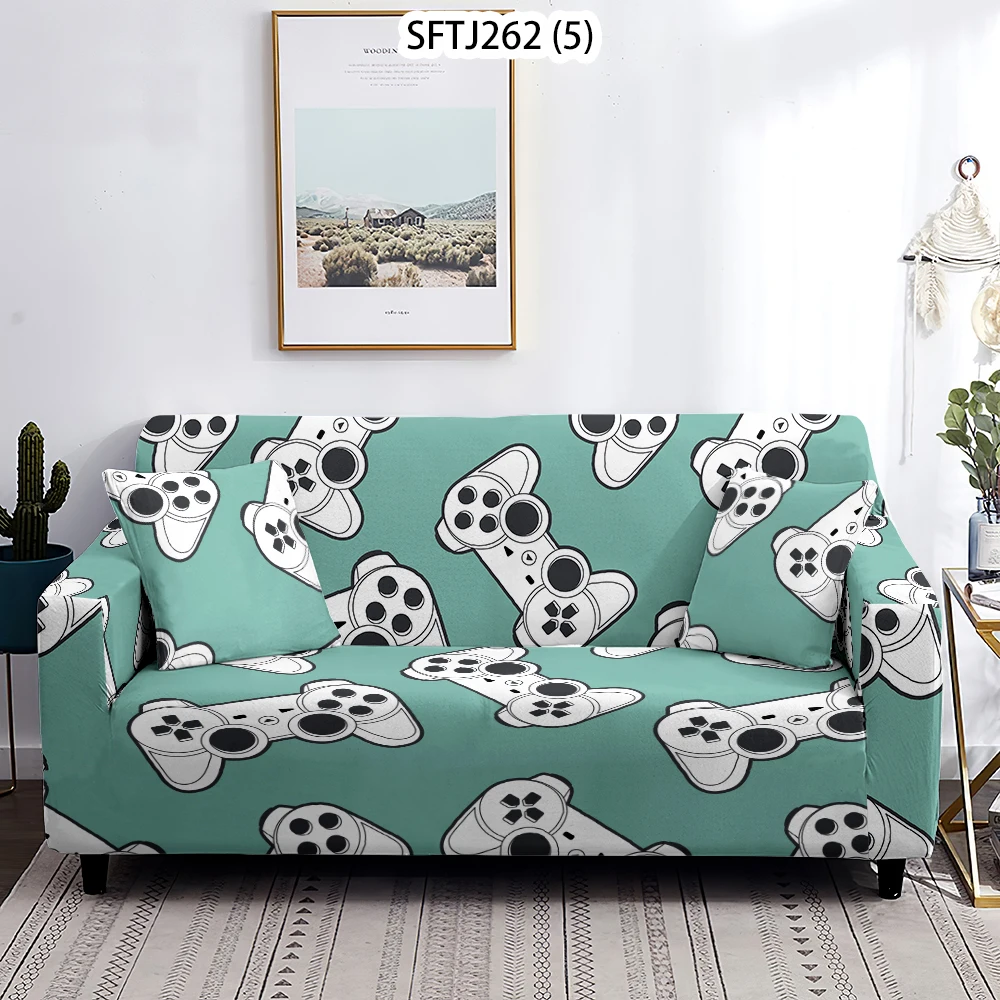 Чехол для игровой консоли L-образный с принтом, эластичное покрытие для угловой подушки, защита от пыли, для гостиной