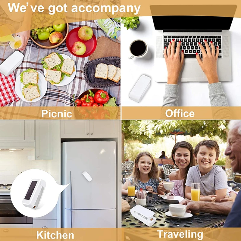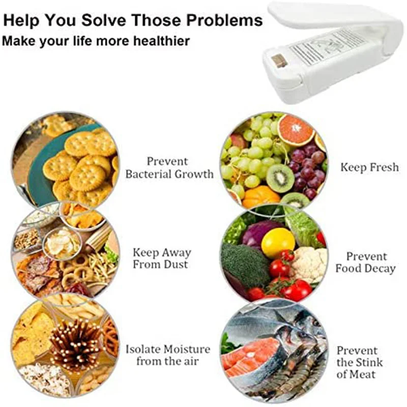 Уплотнение в считанные секунды: просто нажмите и потяните мини-упаковщик еды через мешок, чтобы создать герметичное уплотнение. Вы будете блокировать еду/закуски в свежести и вкусе.