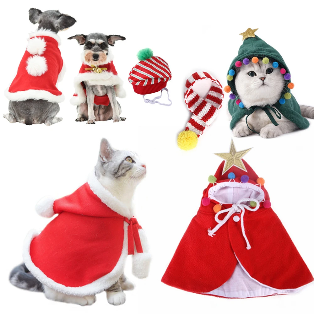 2021 Рождественская шапка, костюм для домашних животных на Хэллоуин, костюмы для кошек, собак, щенков, шарф, подарок на Новый год, Санта, зимний косплей, косплей на Хэллоуин