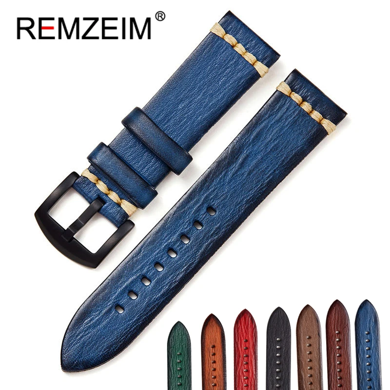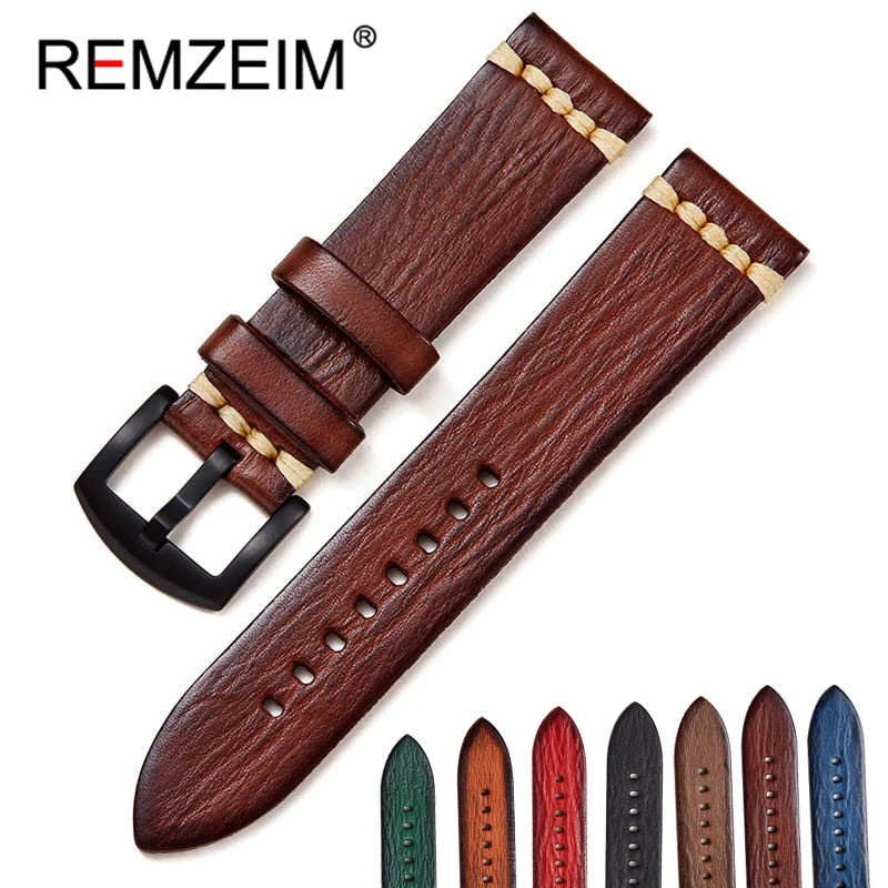 Ремешок для часов REMZEIM из натуральной кожи, спортивный браслет для Samsung Galaxy Watch 42 46 мм Gear S3, 18 мм 20 мм 22 мм 24 мм