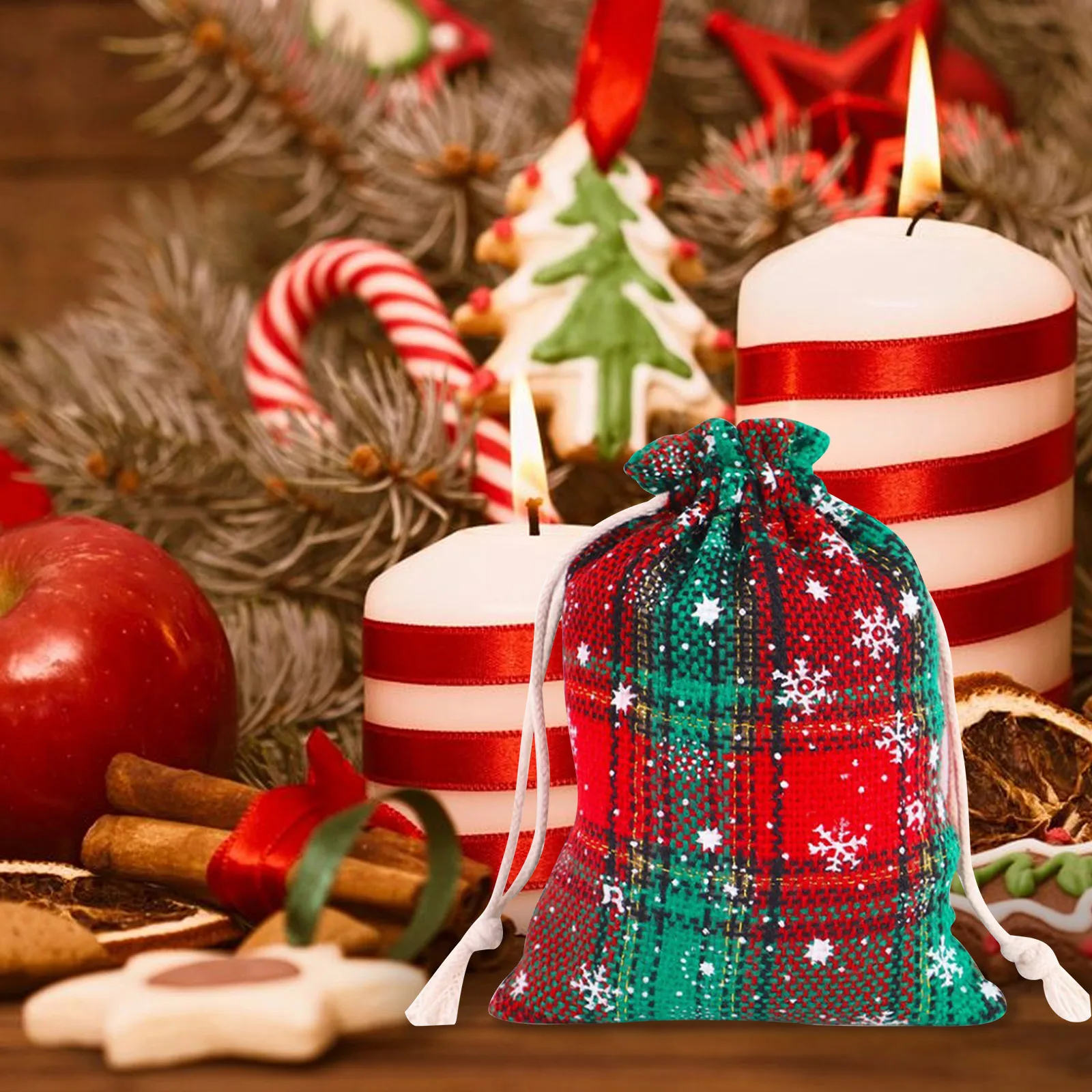 Рождественская клетчатая сумка на шнурке в виде буйвола, клетчатые мешочки из мешковины с объемным рисунком снеговика, лося, сумка для конфет, Рождественская вечеринка