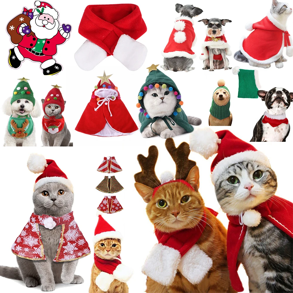 Рождественская шапка, костюм для домашних животных на Хэллоуин, костюмы для кошек, собак, щенков, шарф, подарок на Новый год, Санта, зимний косплей, товары для собак и кошек на Хэллоуин