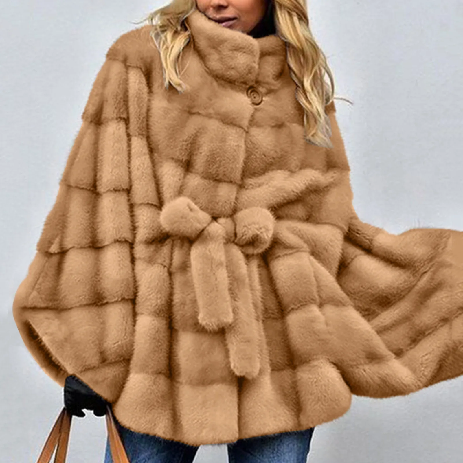 Женское зимнее однотонное пальто из искусственного меха с рукавами летучая мышь