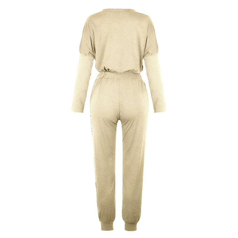 Style Женский спортивный костюм: костюм из двух предметов/пуловер с длинными рукавами/вырез лодочкой/длинные брюки/пояс/высокая талия/переплетаемые ноги/боковые карманы/светильник/свободный/спортивный костюм из двух предметов/повседневный костюм/костюм для бега/Повседневный