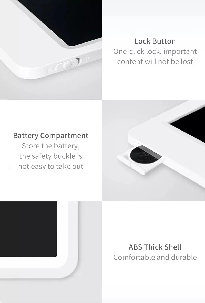Описание:Xiaomi Mijia LCD маленькая доска с ручкой-Вы можете рисовать, когда захотите, записывайте момент вдохновенияЧувствительное к давлению письмо; Супер чистый почерк; Магнитное поглощение; Светильник, легко носить с собой.-Индивидуальная Формула ЖК-пленки, четкий почеркМаленькая доска Xiaomi Mijia LCD принимает индивидуальную формулу жидкокристаллической пленки, сине-зеленый почерк, четкий и привлекательный дисплей, как реальный опыт написания традиционной бумаги, так и плавный опыт ЖК-экрана.-Высокочувствительная технология определения давленияТолщина почерка меняется с силой.-Одна кнопка, чтобы очистить низкое энергопотребление, длительный срок службы батареи является более беззаботнымЖК-экран с нулевой мощностью потребляет только небольшое количество энергии, когда он очищается. Если вы удаляете 100 раз в день, аккумулятор кнопки используется для 365 дней.-Ультрамагнитный стилус-светильник для более удобного храненияВес ручки составляет всего 7 г, и вся машина использует четыре неодимовых магнита из железного бора, которые обладают сильной адсорбционной способностью и долговечной магнитной силой.-Ультратонкий корпус, легко носить с собойТонкий корпус 7 мм тонкий, светильник и портативный, что снижает нагрузку на путешествия.
