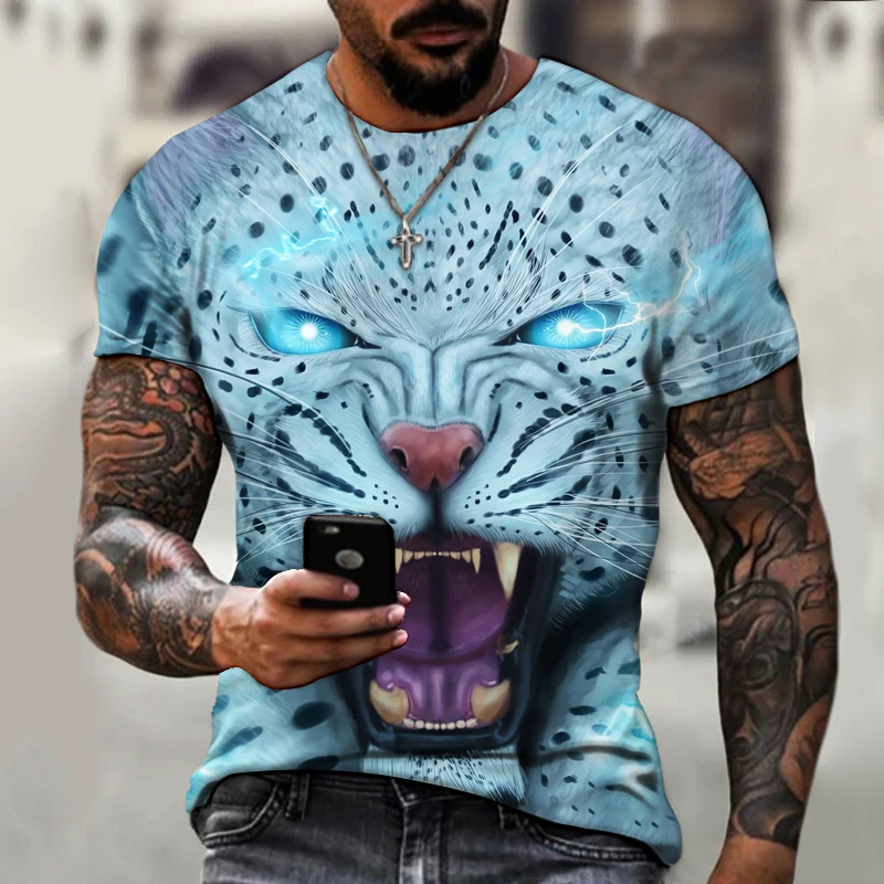Футболка мужская с коротким рукавом, модная рубашка с принтом тигра...