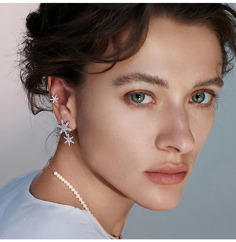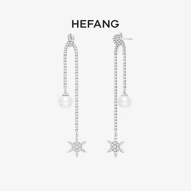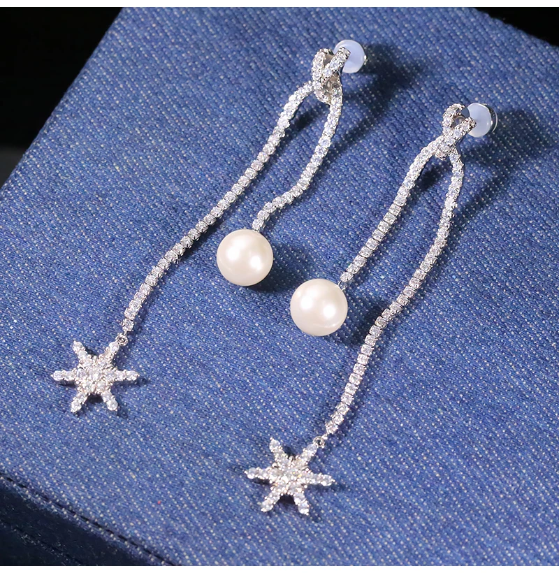 Женские серьги из серебра 925 пробы, вечерние жемчугом и снежинками