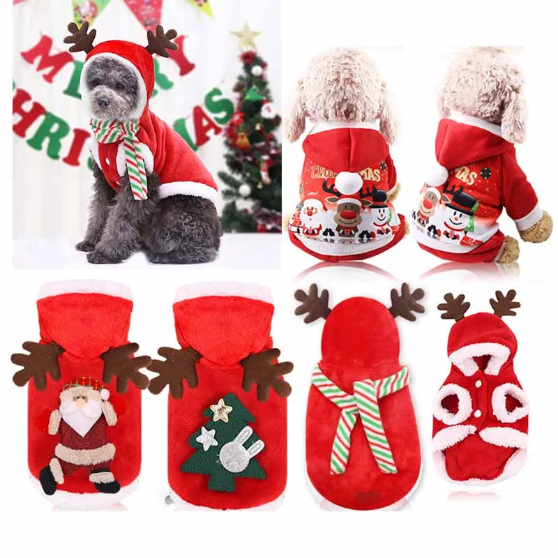 Рождественская одежда для домашних питомцев, зимняя одежда для мале...
