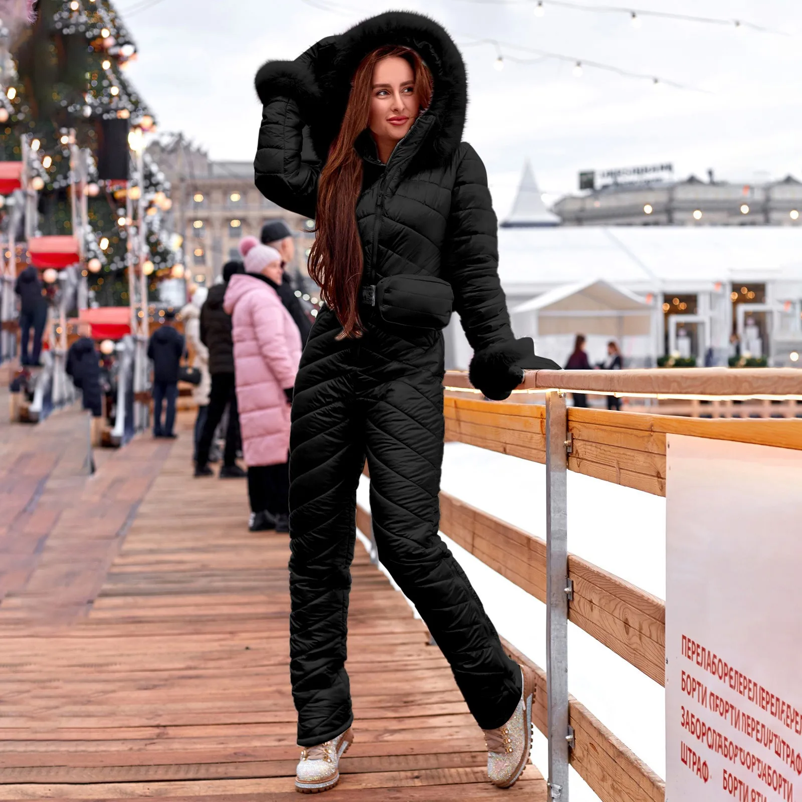 Слитный лыжный костюм, женские куртки, Зимняя парка с капюшоном, комбинезон, плотный популярный костюм для сноуборда, костюм на молнии, комбинезон для сноуборда