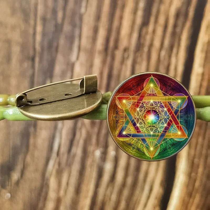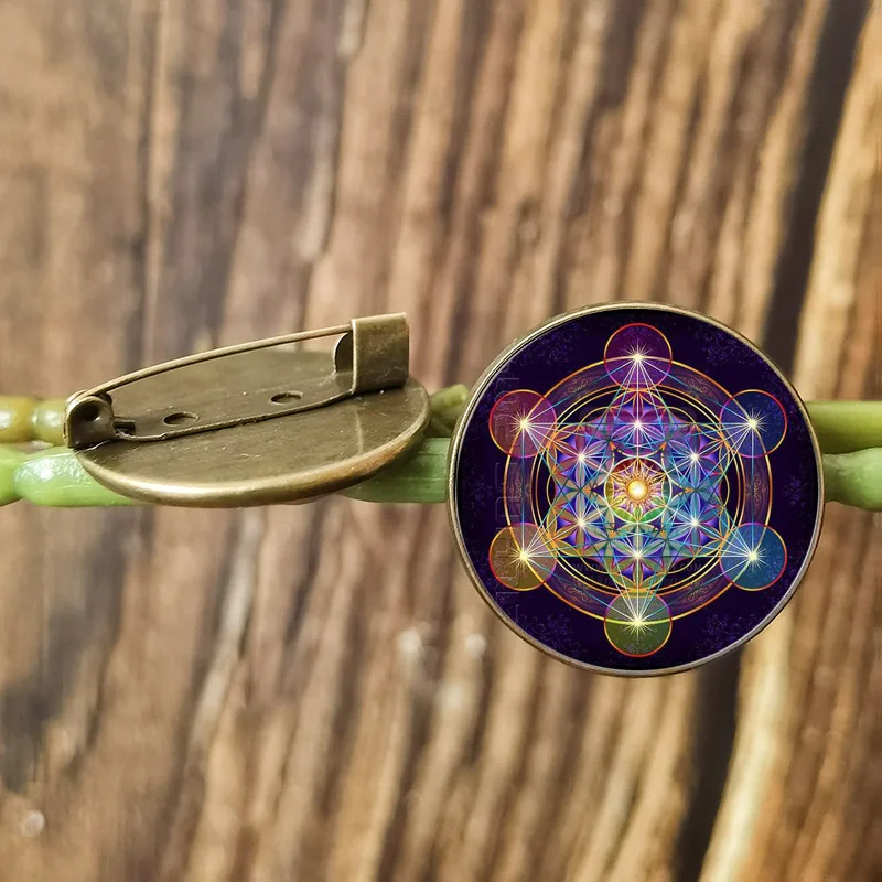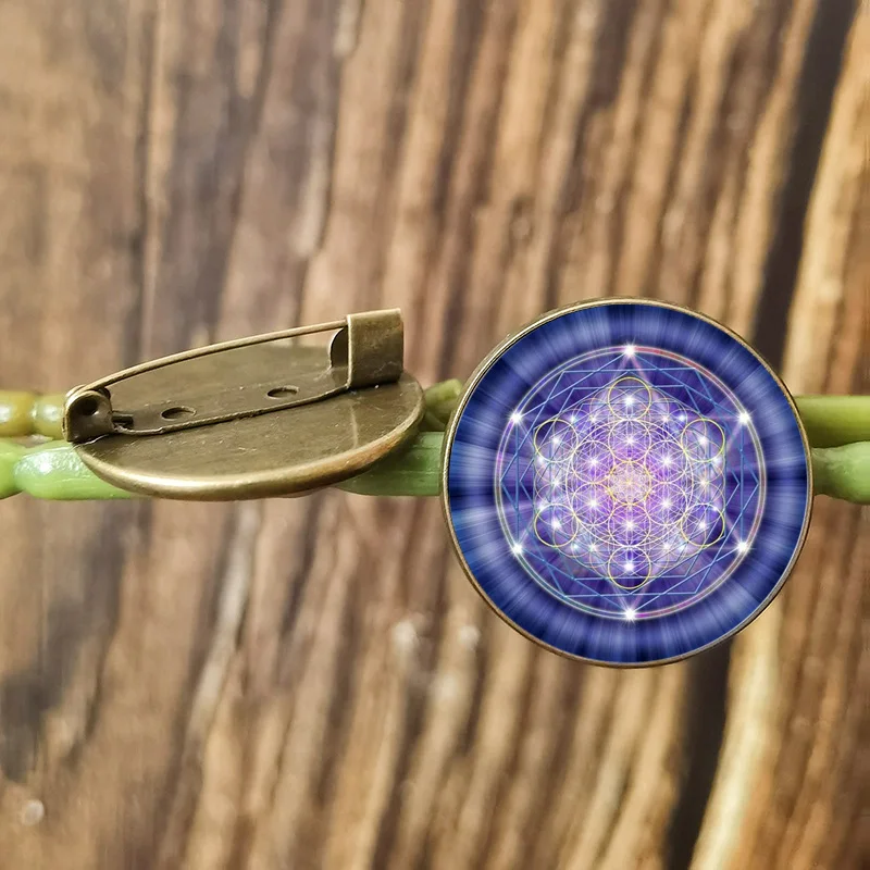 Метатрон куб брошь Шри Янтра Сакральная геометрия цветок жизни стеклянная картина ручной работы ретро Металлическая Булавка сумка аксессуары