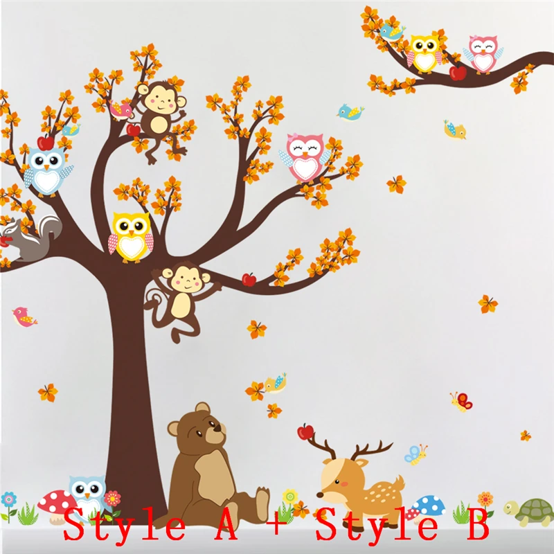 Мультяшный медведь обезьяна совы Дерево наклейки на стену для детской комнаты украшение для дома наклейки для детской сафари роспись художественные плакаты подарок для детей