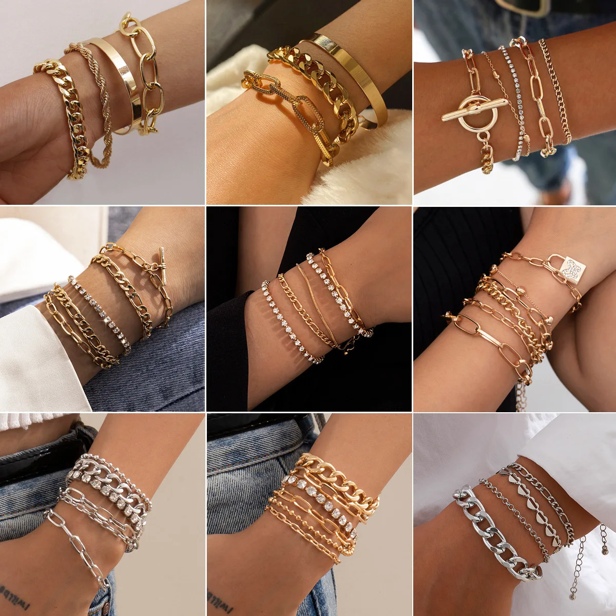 Комплект женских браслетов из кубинской цепи в стиле панк, 4 шт.