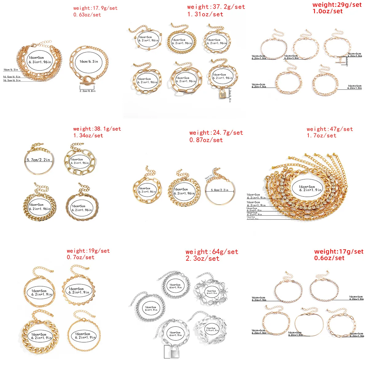 Женские браслеты с цепочкой, набор из толстого золотого цвета, брас...