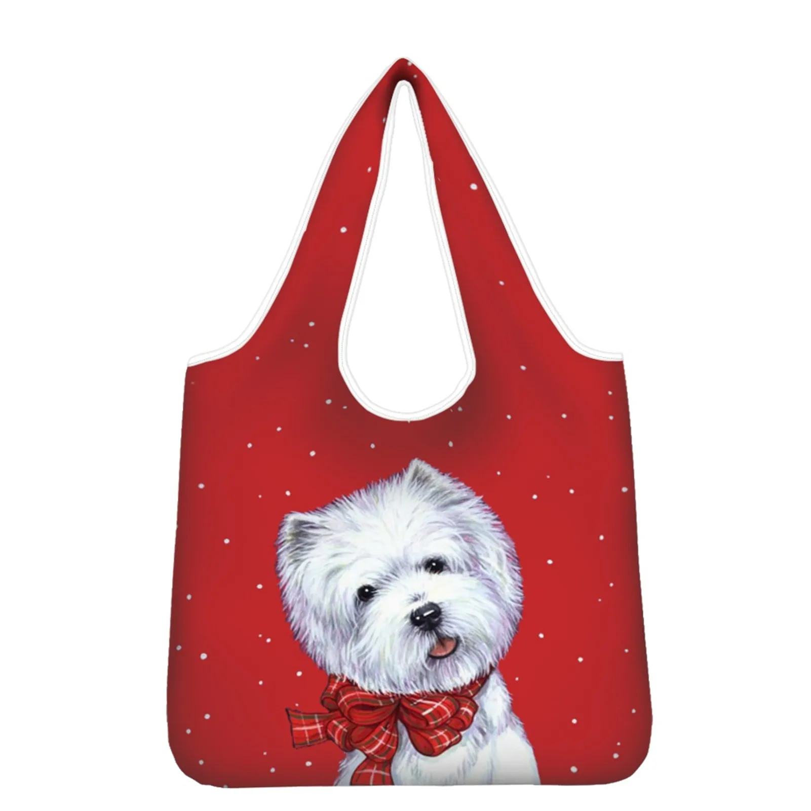 Многоразовая Складная Сумка-тоут для покупок с принтом рождественской собаки, большая сумка для продуктов West Highland Terrier, сумки, экологичные сумки для хранения