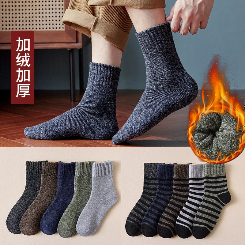 Мужские теплые носки 5 пар, зимние теплые носки из хлопка, модные классические мужские махровые плотные рабочие носки, подарки для мужчин
