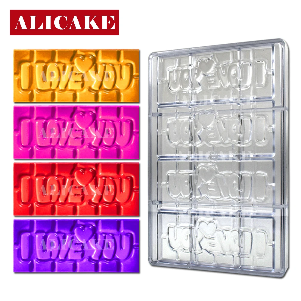 Поликарбонатная форма для шоколада, форма I LOVE YOU, Кондитерская форма на День святого Валентина, формочка для шоколада, инструменты для выпечки кондитерских изделий