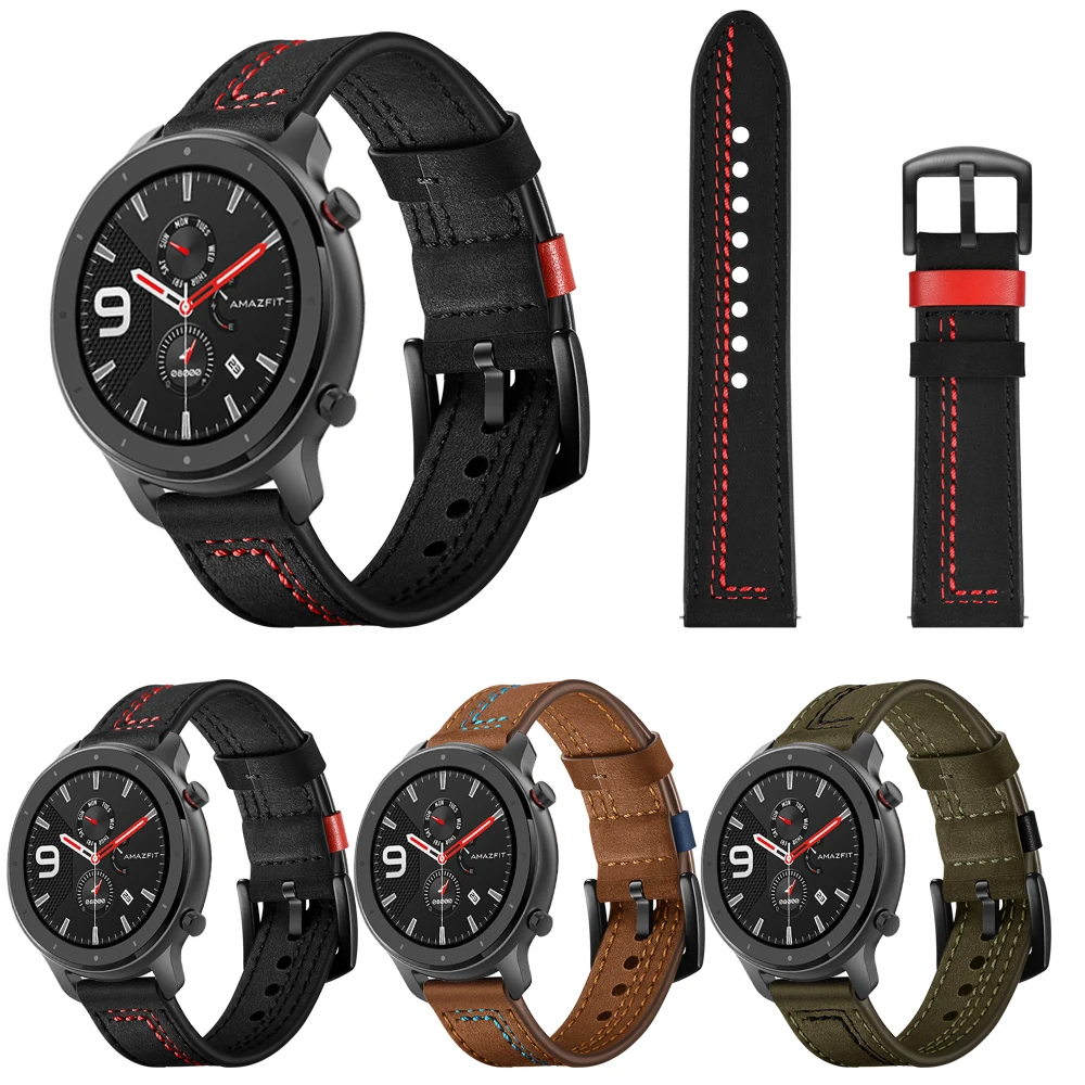 Ремешок кожаный для Huawei Watch GT2 GTSamsung Galaxy Watch 4 3Active 2, спортивный Воздухопроницаемый браслет для Amazfit GTR, 22 мм 20 мм