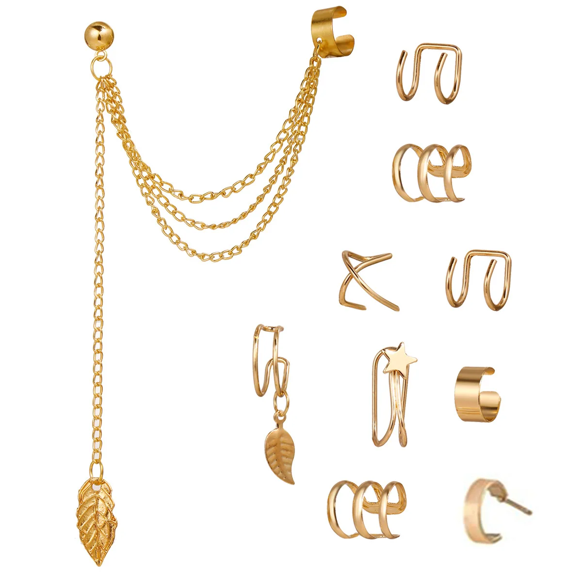 12 шт.компл. Кафф для ушей, золотые листья, не пирсинг, клипсы для ...
