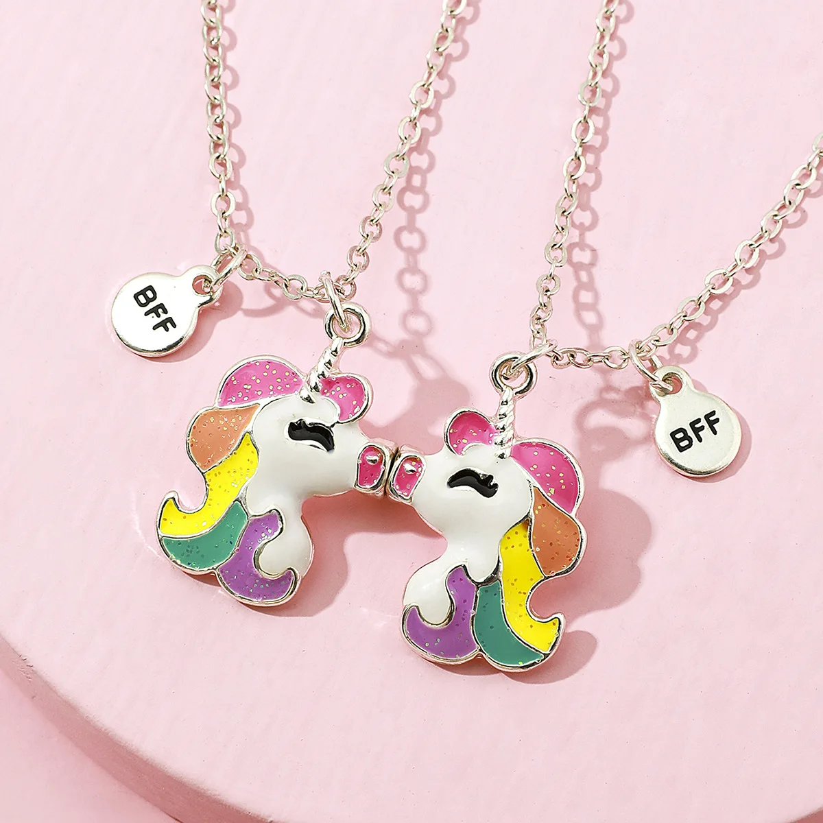 Модное ожерелье с подвеской в виде единорога на магнитах, 2 шт.компл., милое ожерелье для лучших друзей, милое ожерелье, Золотая цепочка, чокер для женщин, подарки