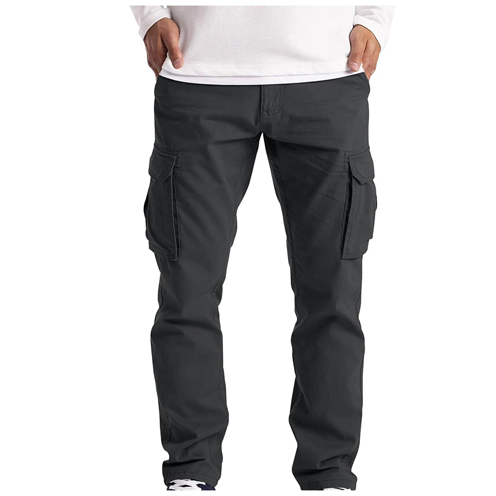 Модные мужские однотонные легкие дышащие прямые брюки-карго с высокой талией свободные брюки в стиле милитари мешковатые джоггеры # g3