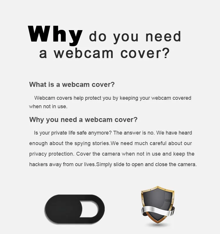 ОсобенностиЦвет: как показано на фотографияхМатериал: АБС-пластик.Размер: 18,5*9*0,7 ммДля ноутбуков, планшетов для защиты вашей безопасности и конфиденциальности, с сильным клеем, который является более долговечный клейкий скотч. Не подходит для смартфона.Не будет мешать закрытию веб-камеры ноутбука.Также может быть декором для вашего ноутбука, и отверстие большое, что не влияет на зрение камеры.Слайдер крышки веб-камеры можно открыть или закрыть одним простым движением пальцев.Закройте его для блокировки потенциальных хакеров. Уникальный дизайн позволяет легко наслаждаться безопасной цифровой жизнью.
