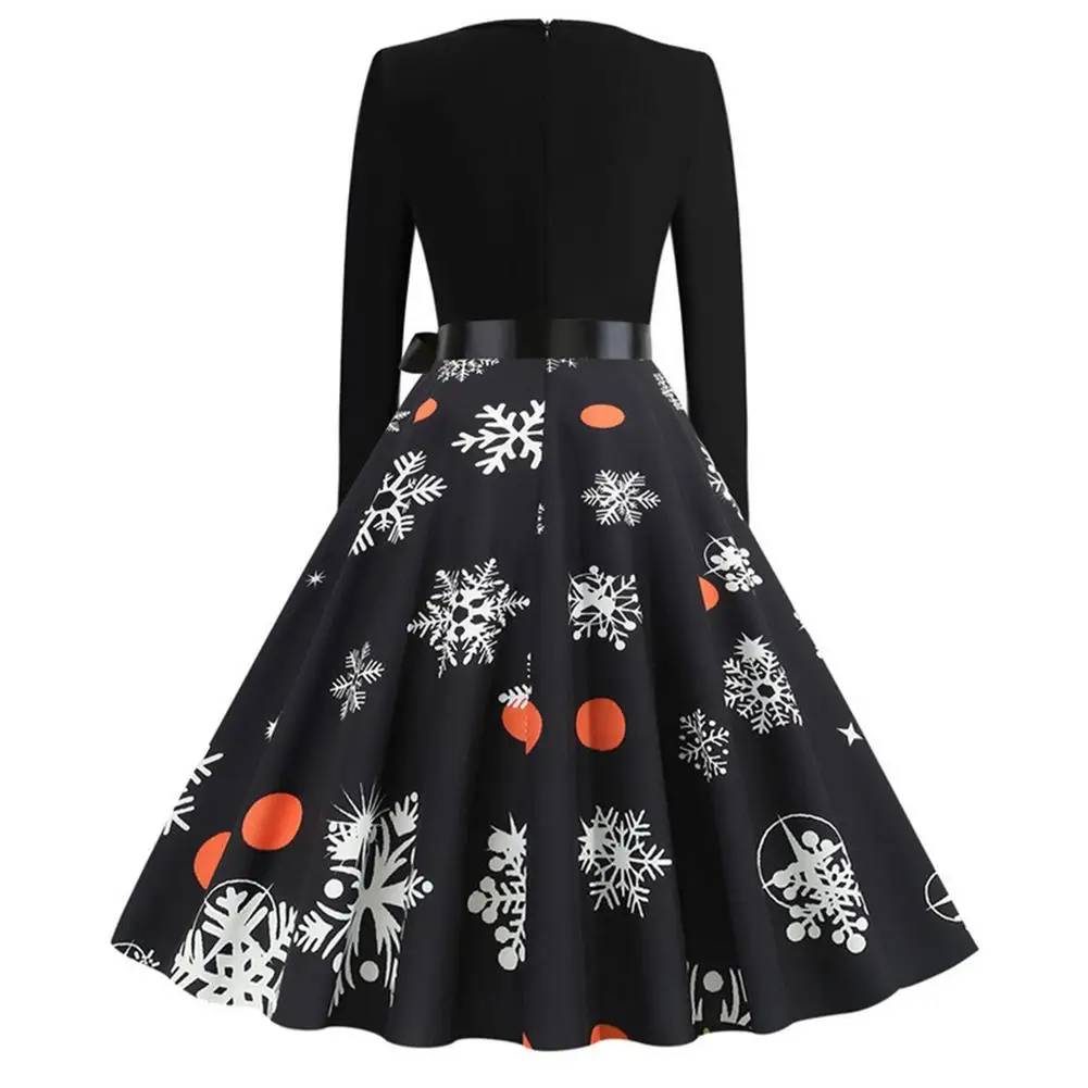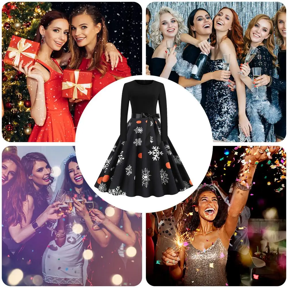 Рождественское женское платье с круглым вырезом и длинным рукавом, ...