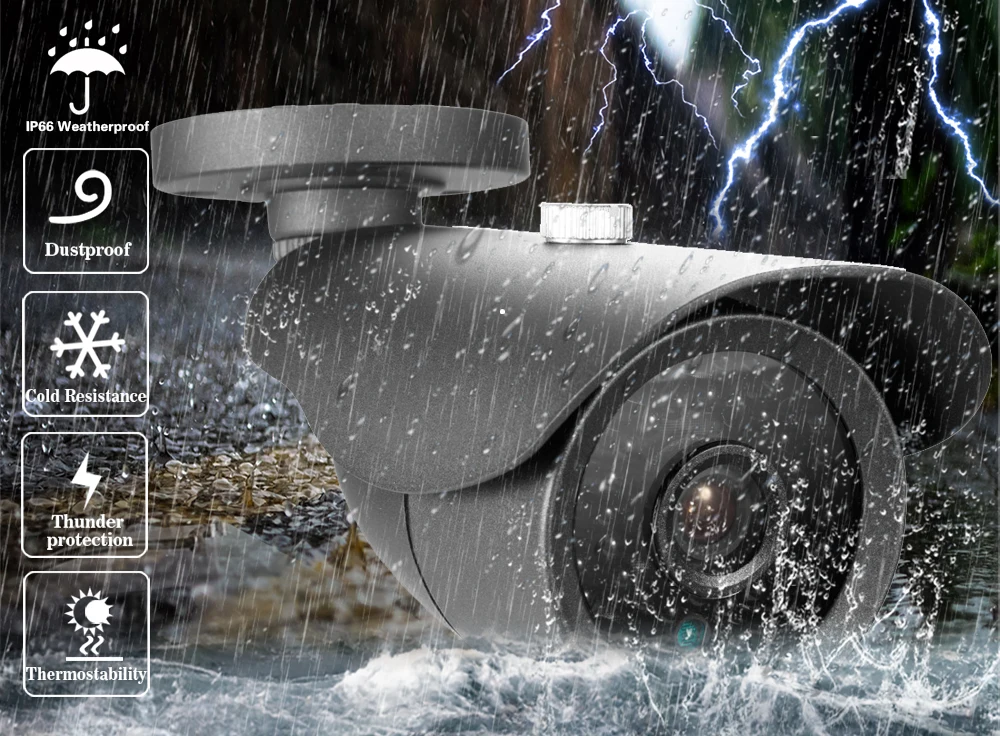 Наша камера имеет сверхпрочный металлический корпус, профессиональный IP66, устойчивый к атмосферным воздействиям, обеспечивая стабильную производительность как внутри, так и снаружи.