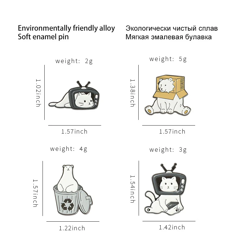 Креативная мультяшная брошь для моделирования белого кота и белого медведя для женщин и мужчин, эмалированная заколка-значки на лацкан, брошь, забавные украшения вечерние