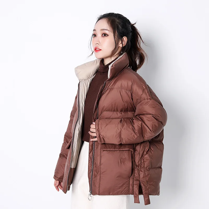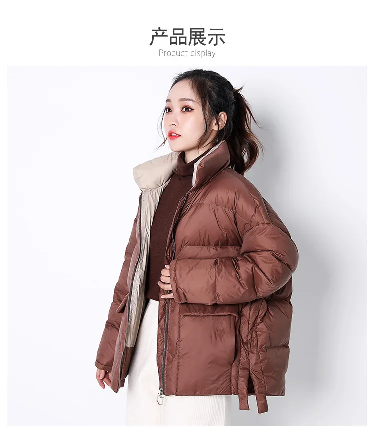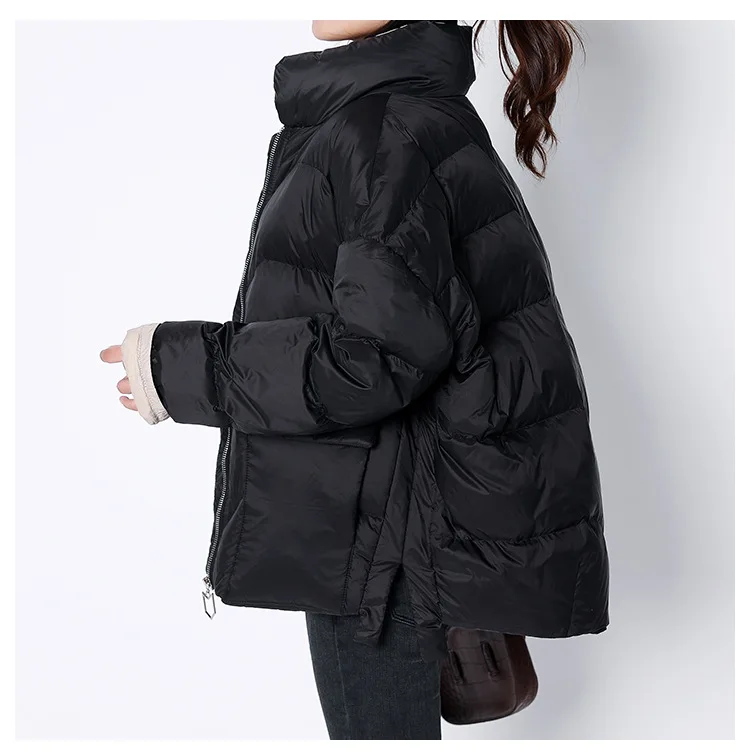Женский короткий пуховик большого размера, зимняя верхняя одежда, корейская мода, утолщенная теплая парка на белом утином пуху, пуховое пальто с большими карманами