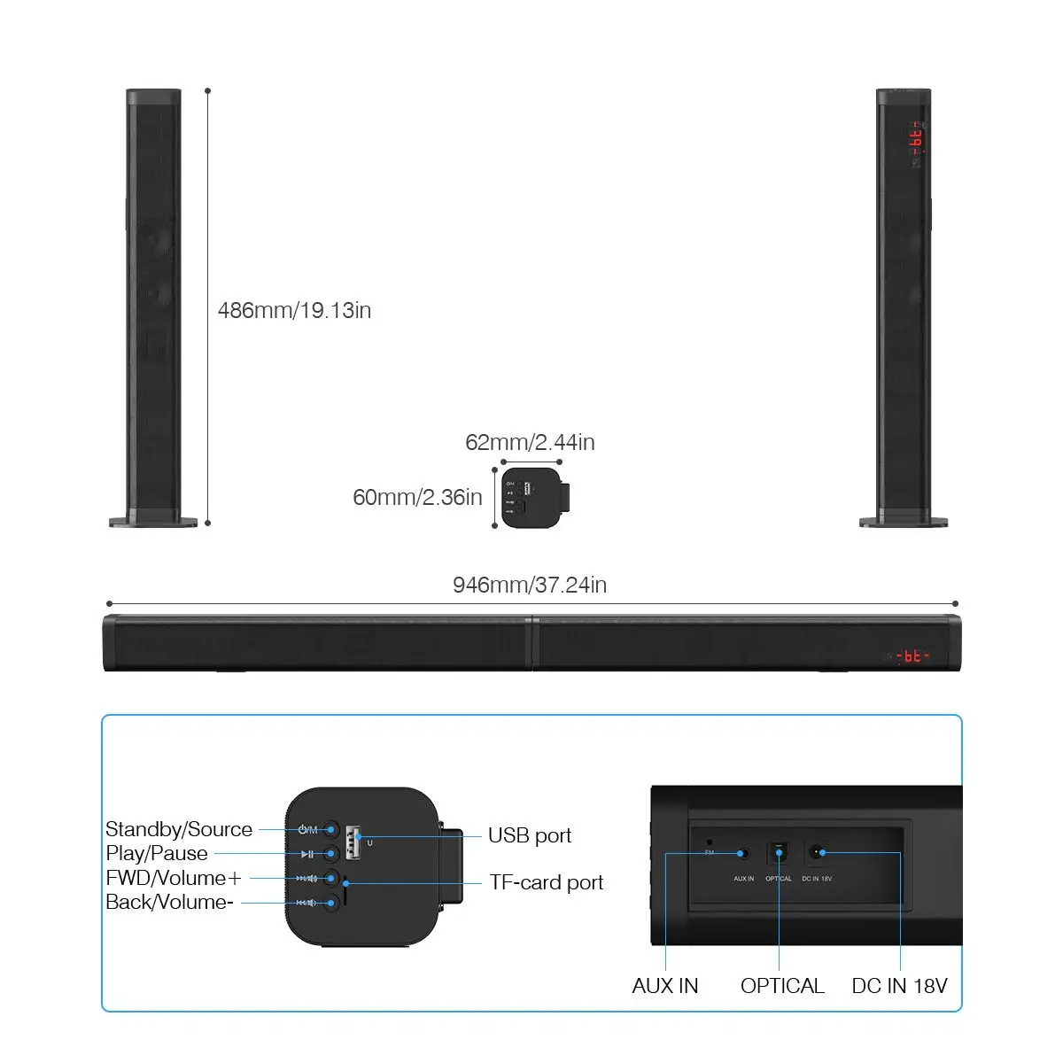 Саундбар является съемным и делает акустическую систему 2,0 Tower home theater.