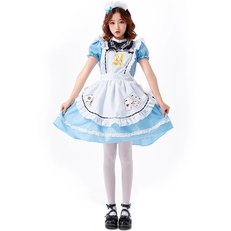 Женский костюм горничной и Лолиты Umorden из страны чудес, косплей-платье синего цвета для Хэллоуина, карнавала, вечевечерние, костюмы Марди Гра