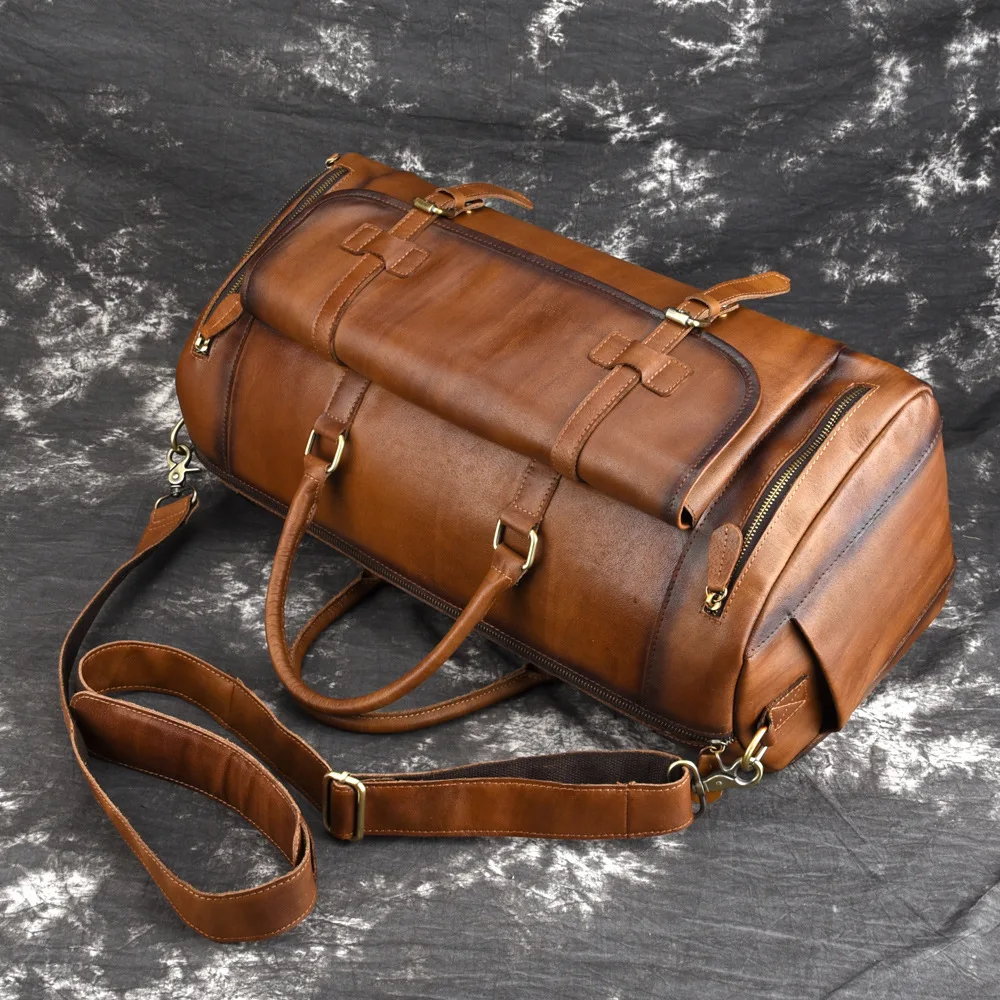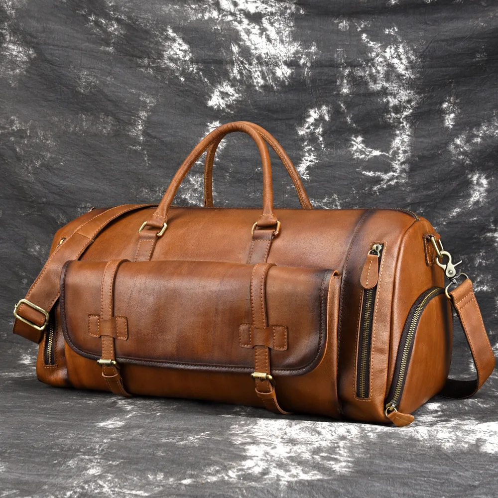 Мужские сумки из коровьей кожи Crazy Horse, деловая дорожная сумка, большая дорожная вещевая прочная сумка для выходных, мужская сумка для багажа из натуральной кожи