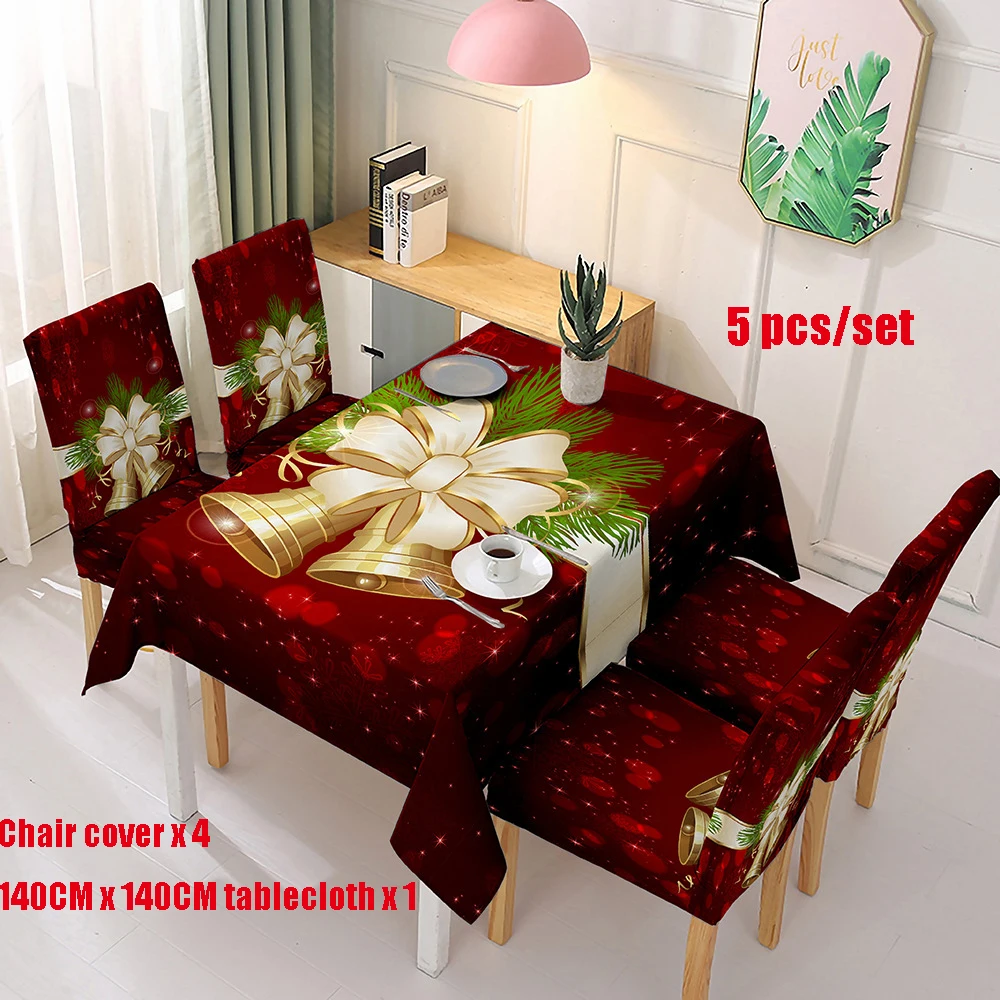 Рождественская скатерть, чехлы для обеденных стульев, домашняя анти...
